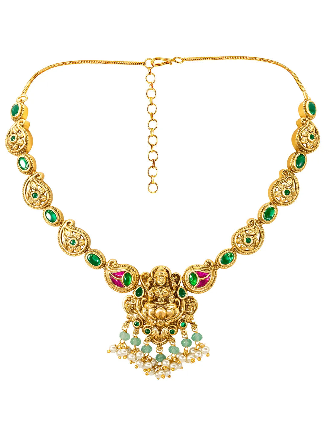 Product Name: Lakshmi And Kari Motif Temple Necklace Set