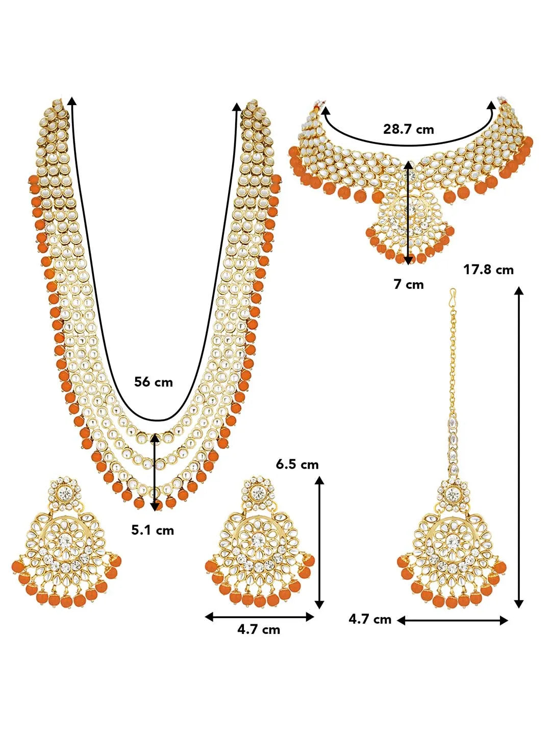 Dimensions: Long Necklace Length: 56 cm Width: 5.1 cm Short Necklace Length: 28.7 cm Width: 7 cm Earrings Length: 6.5 cm Width: 4.7 cm Maangtikka Length: 17.8 cm Width: 4.7 cm