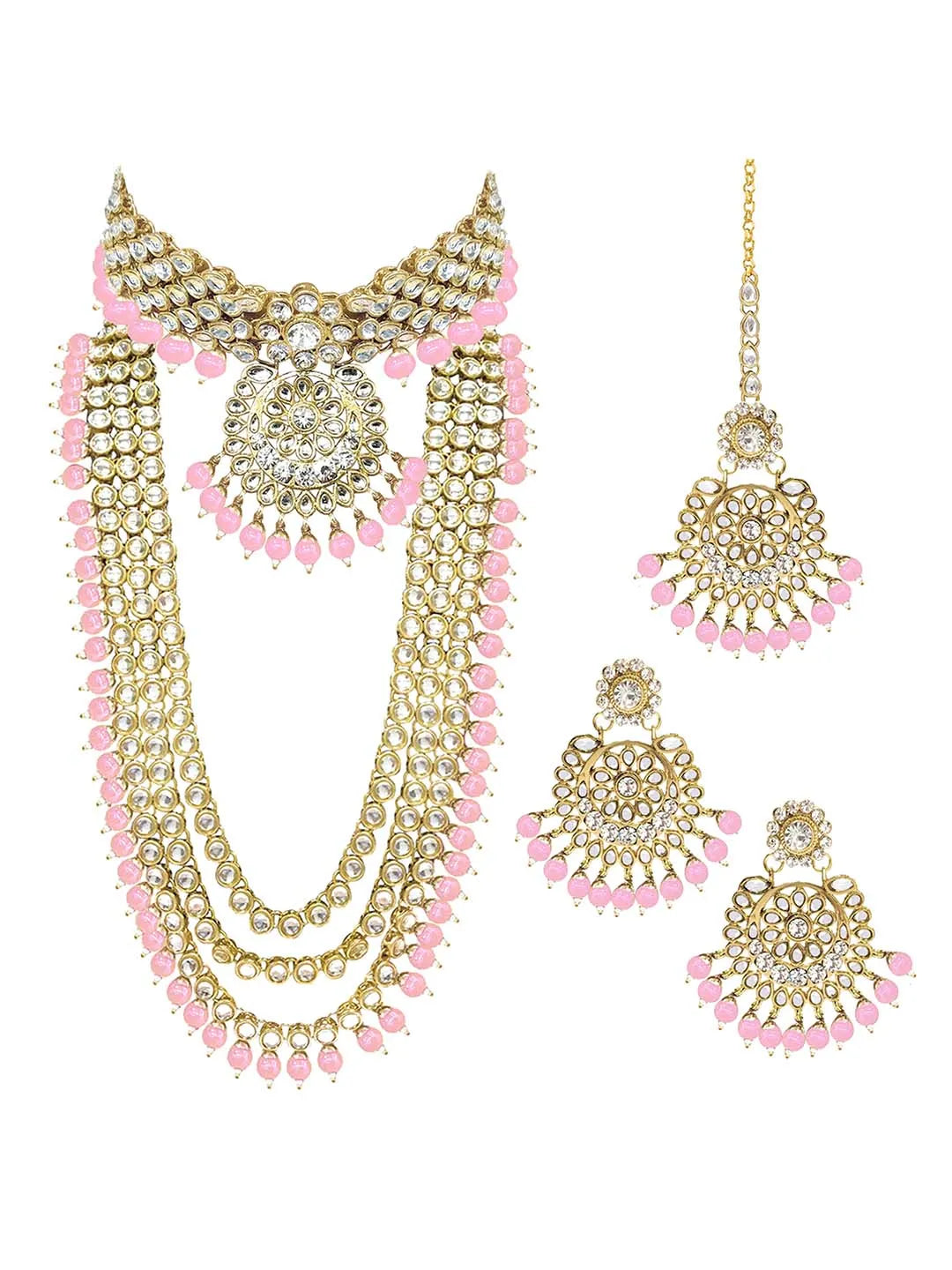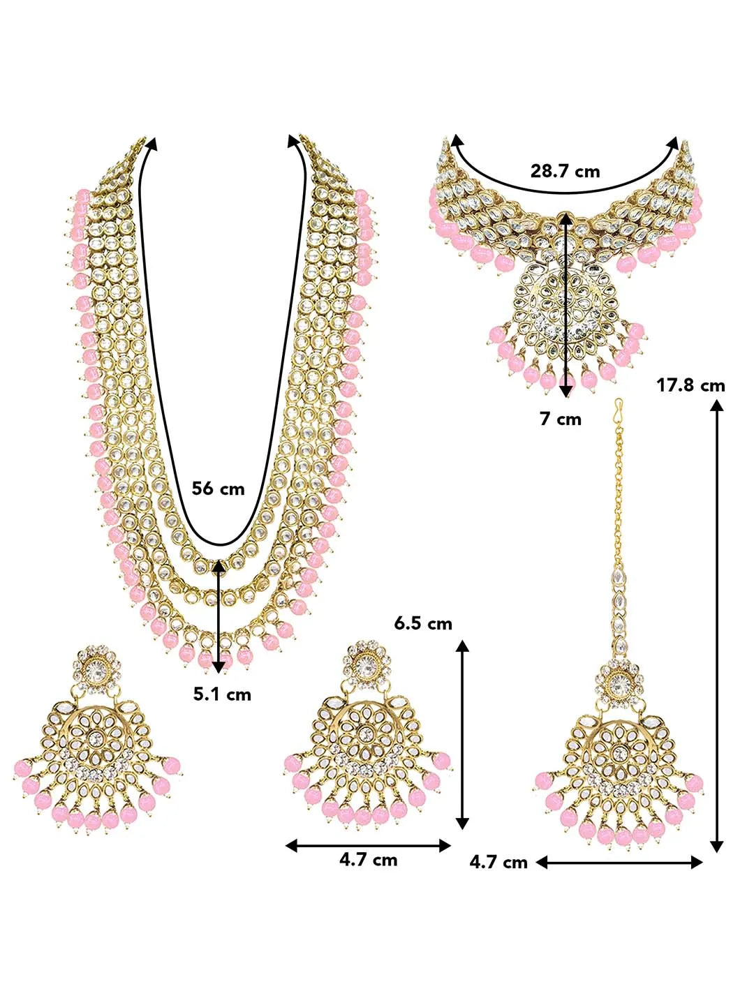 Dimensions: Long Necklace Length: 56 cm Width: 5.1 cm Short Necklace Length: 28.7 cm Width: 7 cm Earrings Length: 6.5 cm Width: 4.7 cm Maangtikka Length: 17.8 cm Width: 4.7 cm