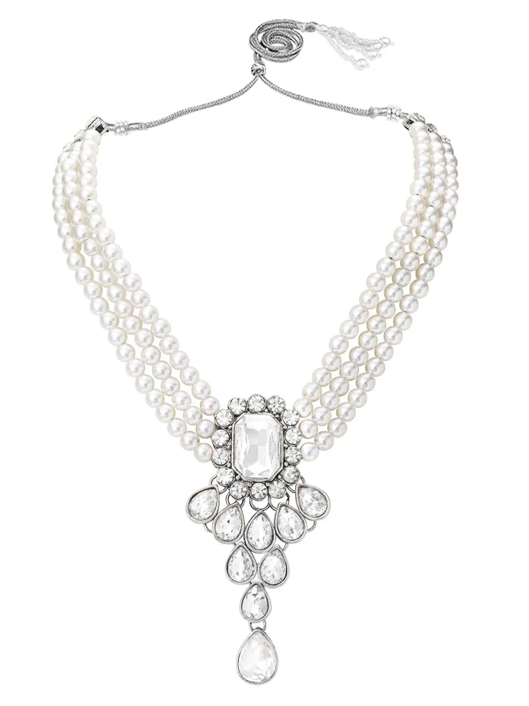 Product Name: Bliss Crystal Pearl Choker Necklace Set - Rhodium White