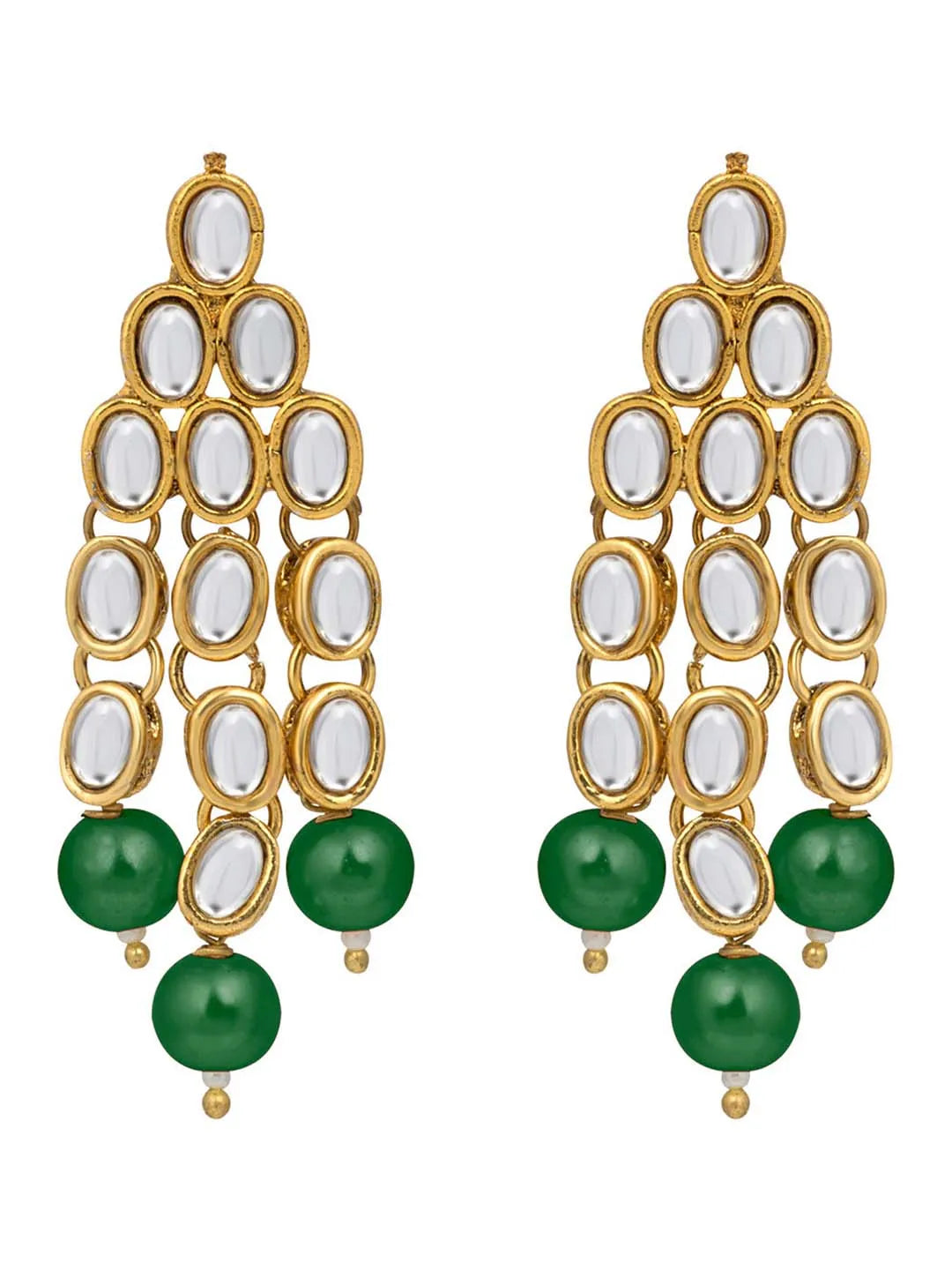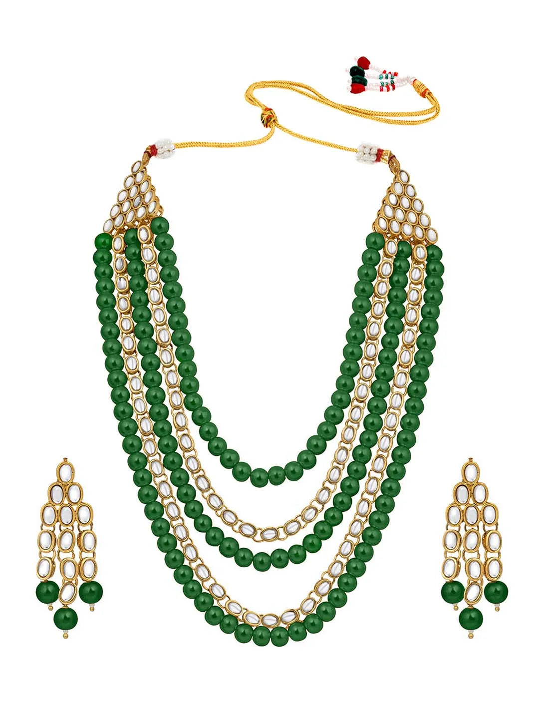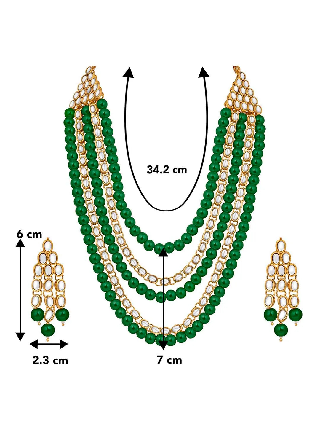 Product Name: Bliss Kundan Faux Pearl Necklace Set - Green