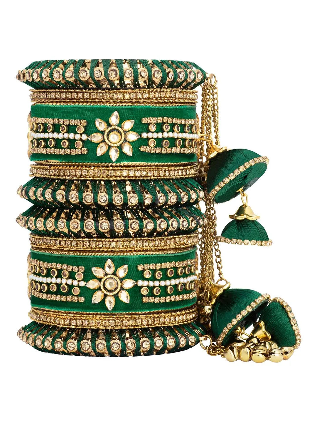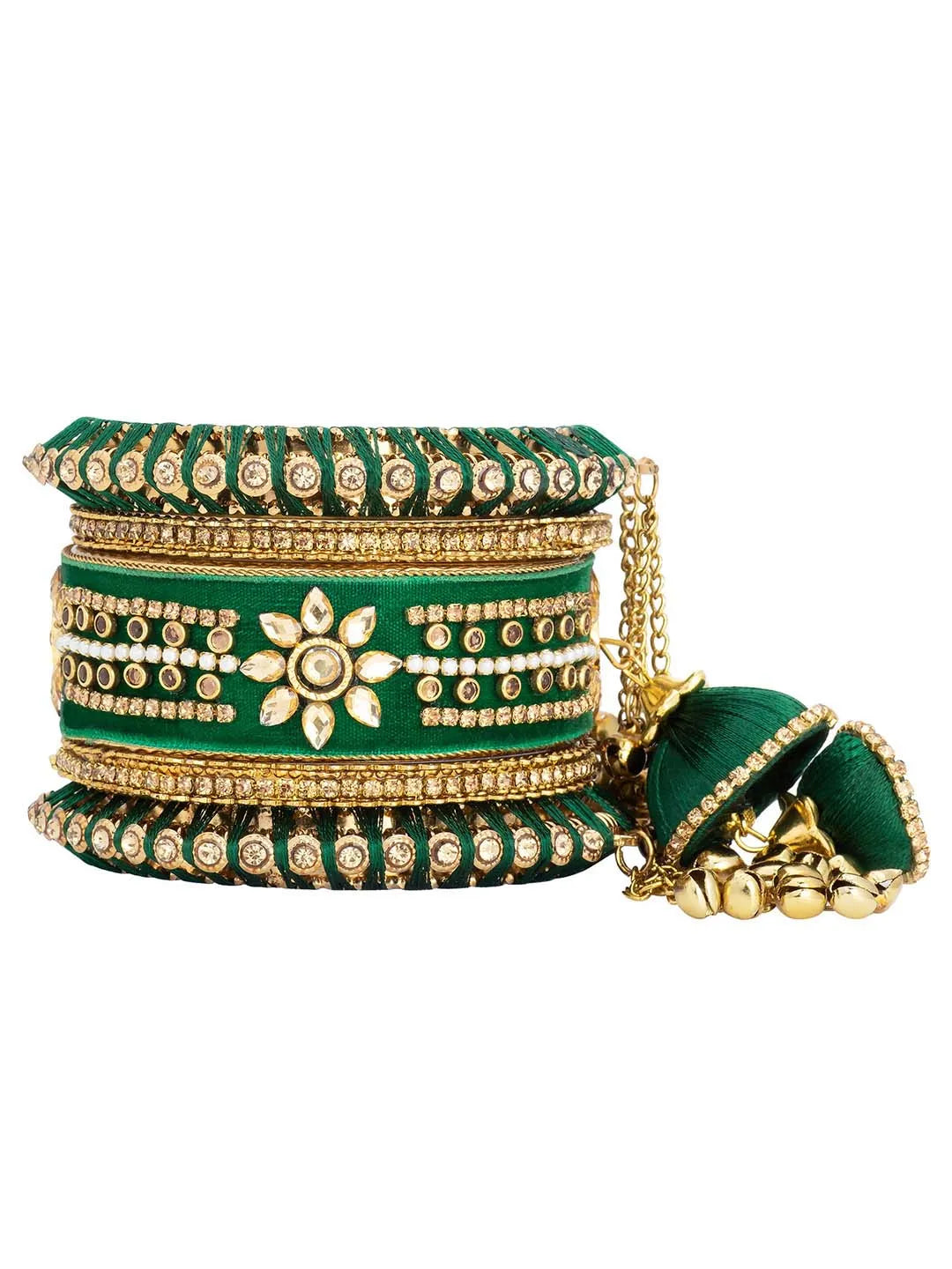Product Name: Blooms Kundan Floral Silk Thread Bangle - Green