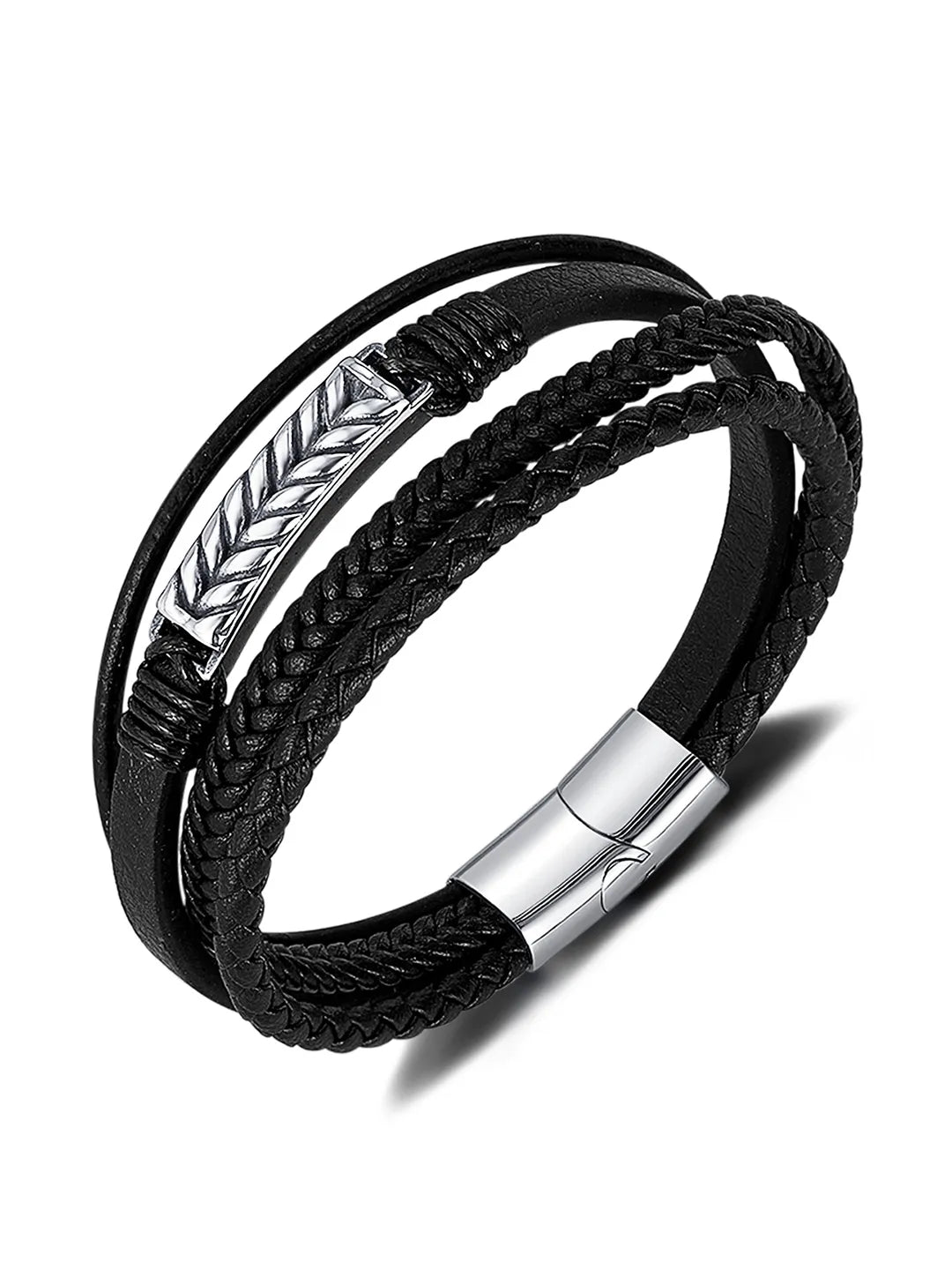 Product Name: Bold Black Leather Bracelets for Men