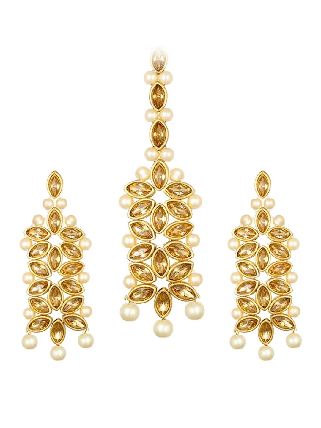 Product Name: Bridal Bloom Kundan & Pearl Set - Gold