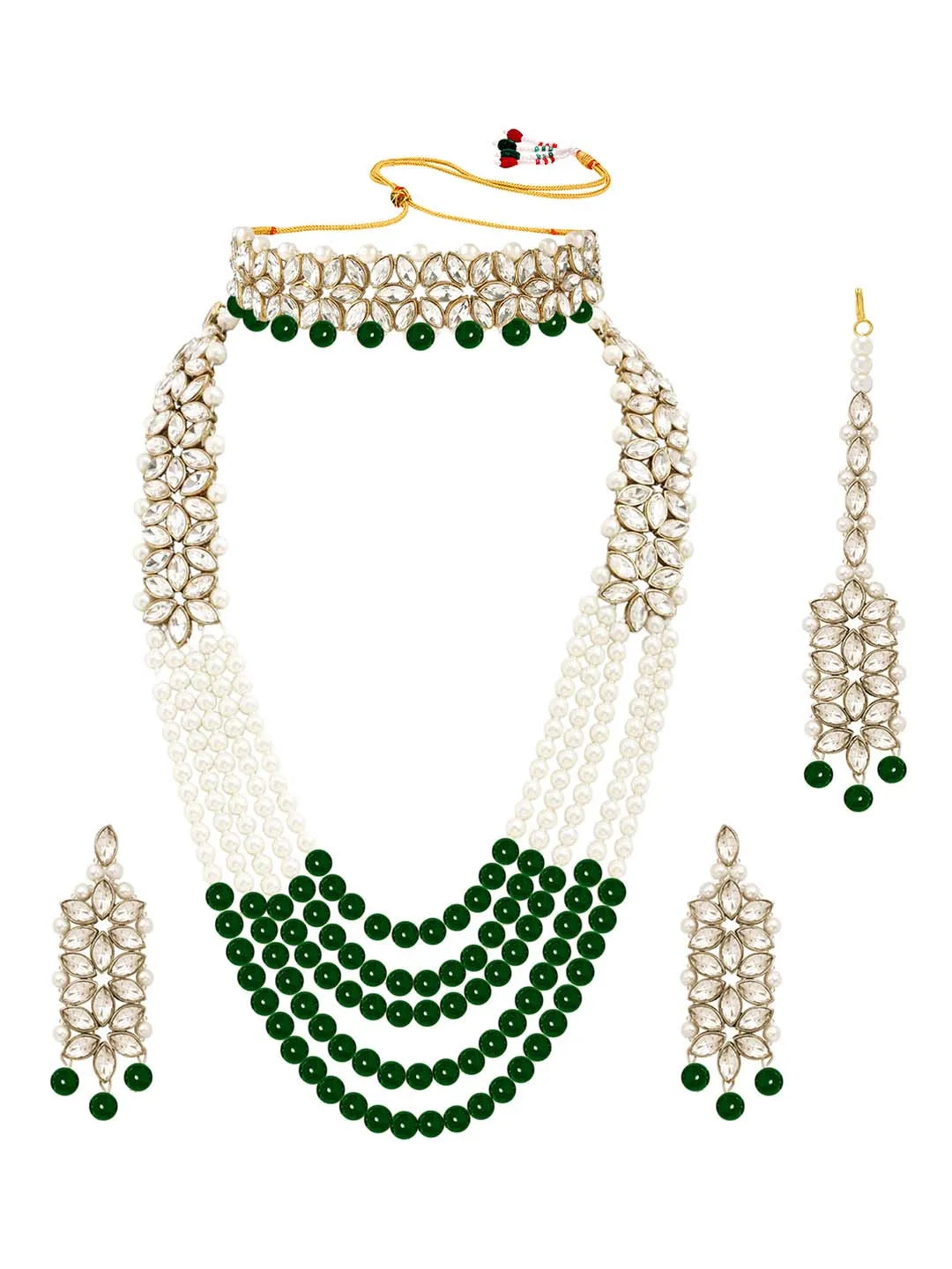 Product Name: Bridal Bloom Kundan & Pearl Set - Green-1