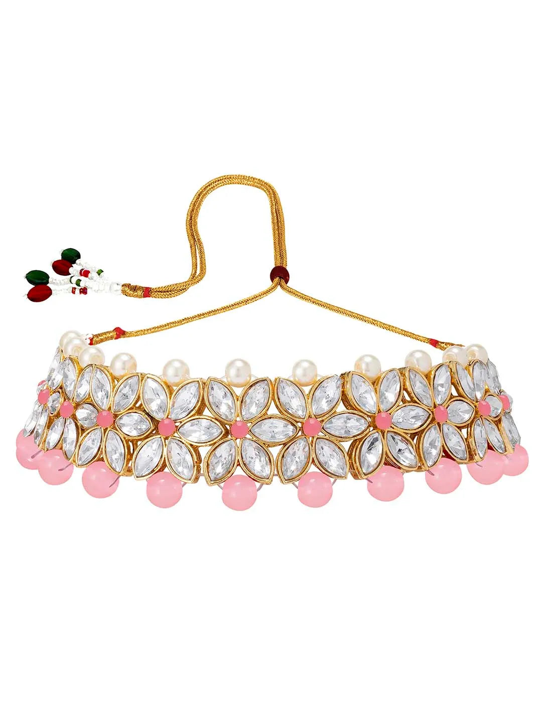Product Name: Bridal Bloom Kundan & Pearl Set - Pink