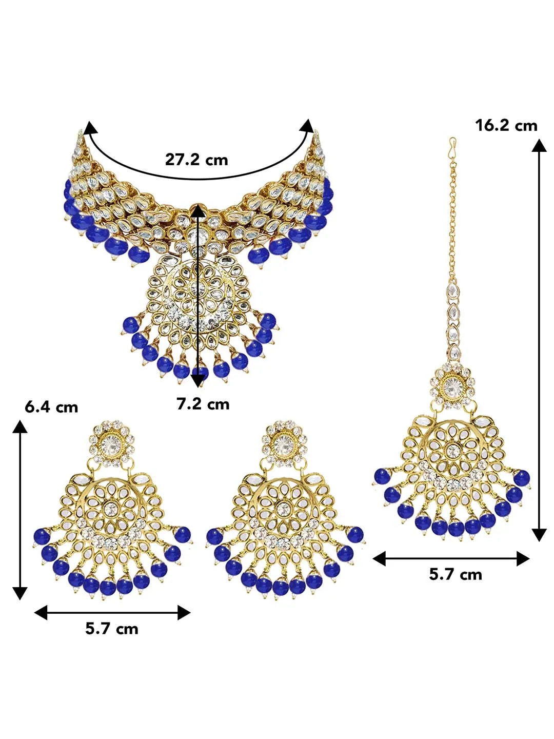 Dimensions: Necklace Length - 27.2 cm Width - 7.2 cm Earring Heigth - 6.4 cm Width - 5.7 cm Mangtikka Length - 16.2 cm Width - 5.7 cm