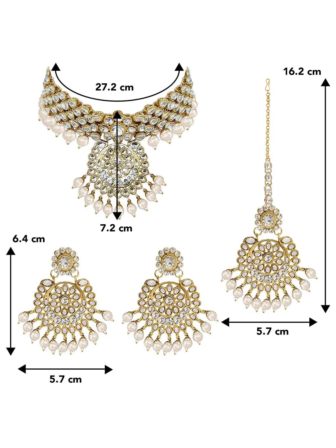 Dimensions: Necklace Length - 27.2 cm Width - 7.2 cm Earring Heigth - 6.4 cm Width - 5.7 cm Mangtikka Length - 16.2 cm Width - 5.7 cm