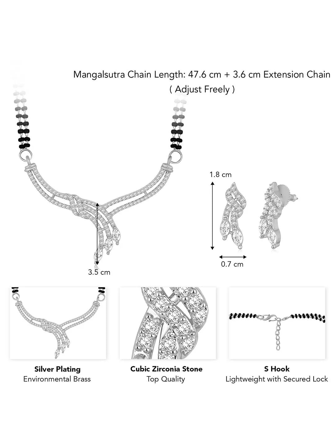 Product Name: CZ Sleek Curve Silver Mangalsutra Set