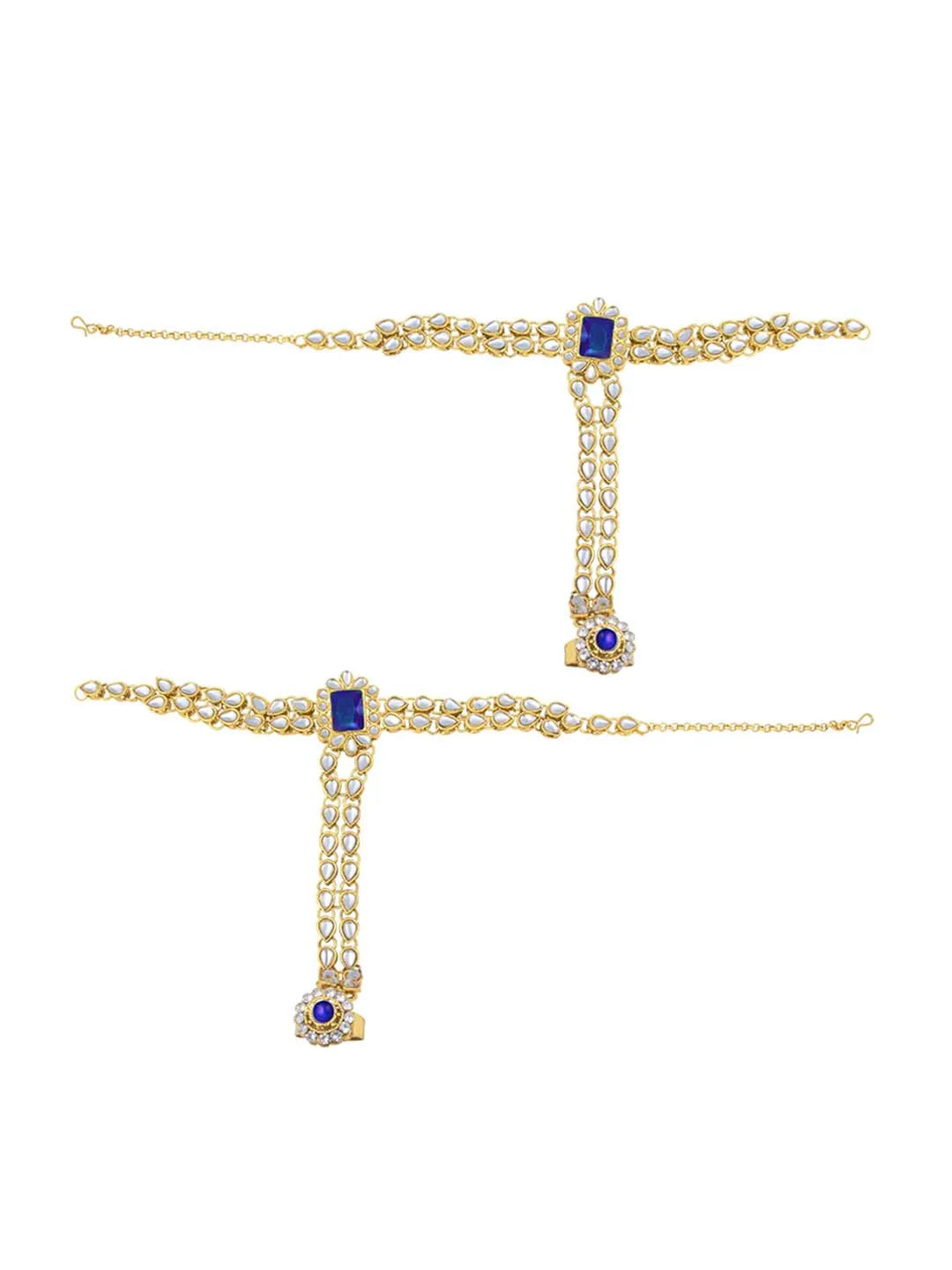 In the Box: 1 ChokerNecklace 1 Pair of Earrings 1 Matha Patti Maang tikka 1 Pair of Hath Panja 1 Nathiya