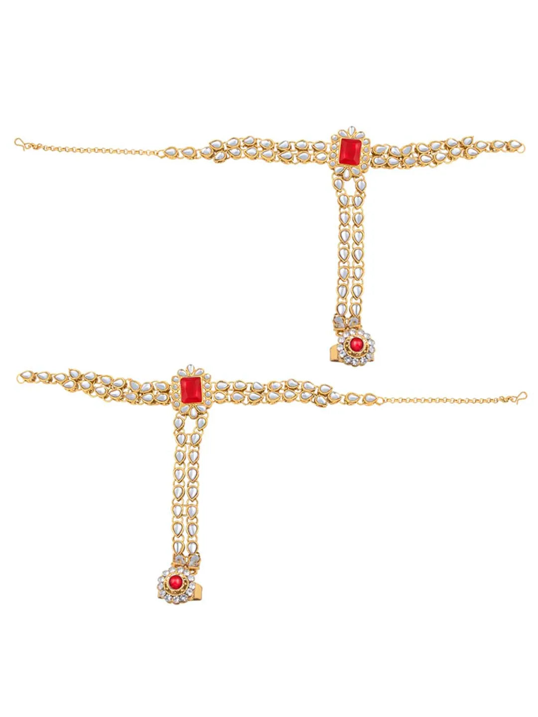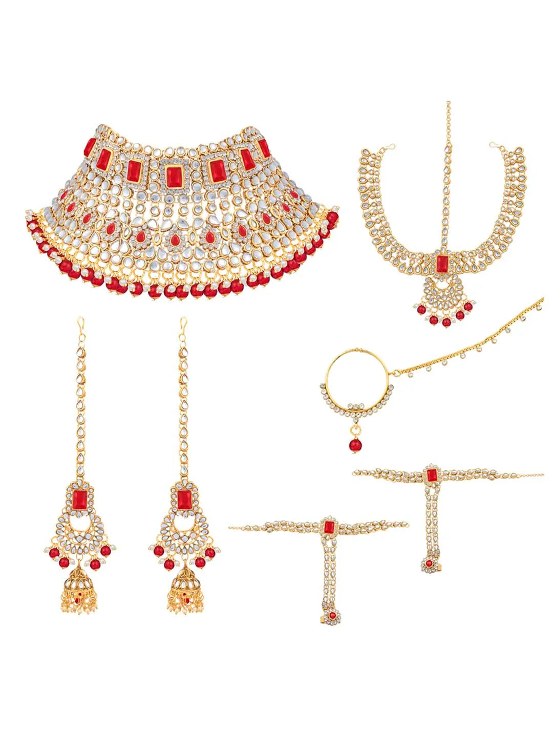 In the Box: 1 ChokerNecklace 1 Pair of Earrings 1 Matha Patti Maang tikka 1 Pair of Hath Panja 1 Nathiya