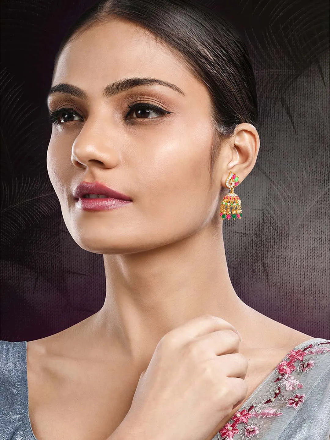 Product Name: Charmed by Color CZ Jhumki Earrings - Rani Pink Green