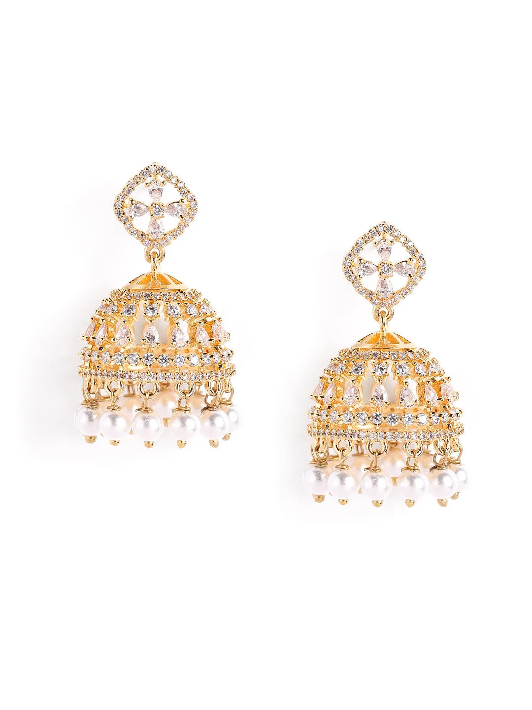 Product Name: Charming Pearl CZ Jhumki Earrings - Gold
