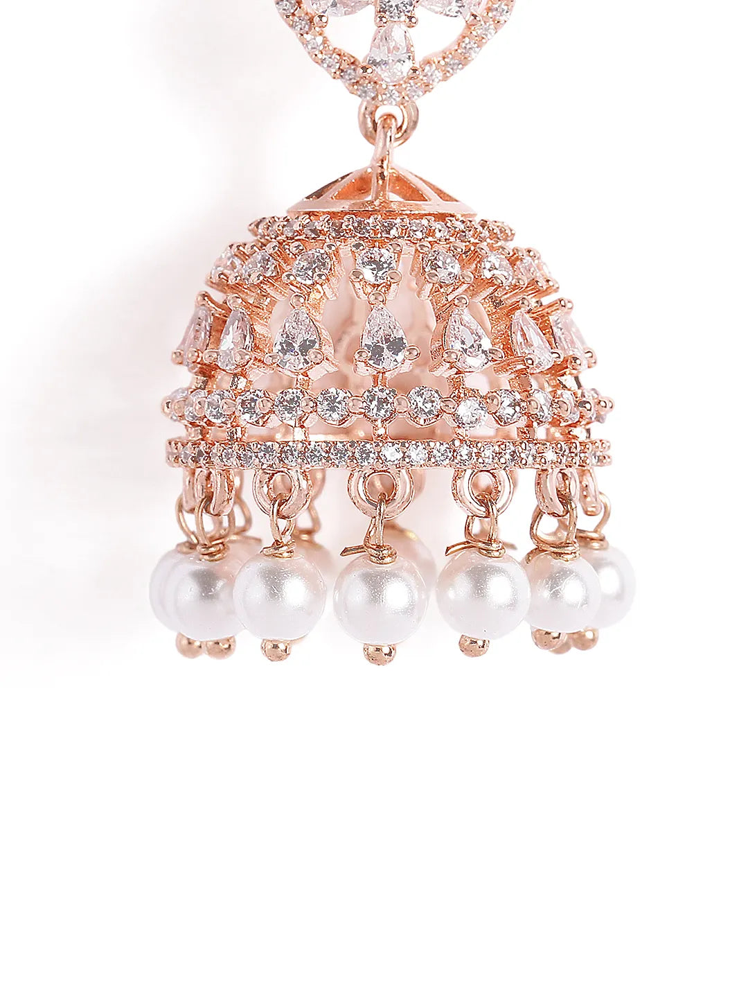 Product Name: Charming Pearl CZ Jhumki Earrings - Rose Gold