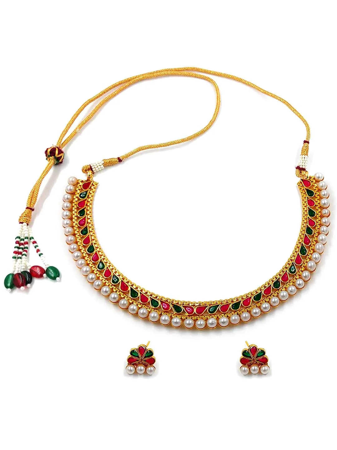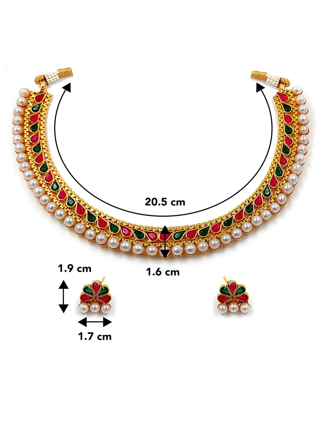 Product Name: Traditional Rani Pink Green Stone Choker Set