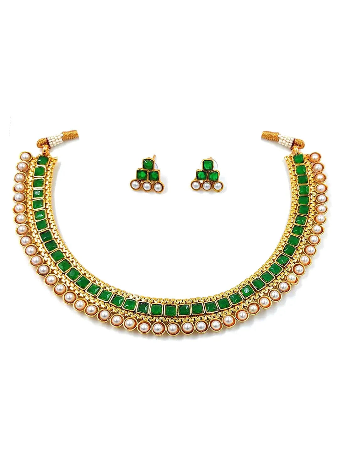 Product Name: Chic Harmony Pearl Stones Necklace Set - Green