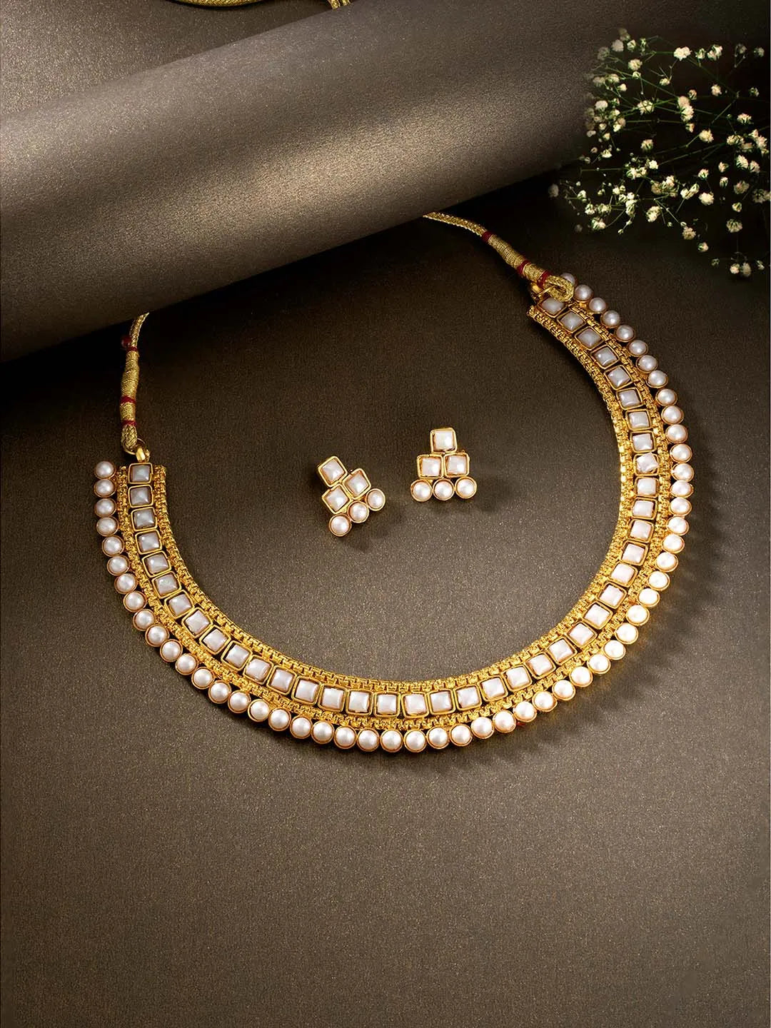 Product Name: Chic Harmony Pearl Stones Necklace Set - White