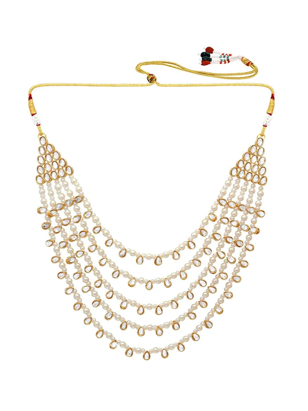 Product Name: Chic Layers Kundan Faux Pearl Necklace Set - White