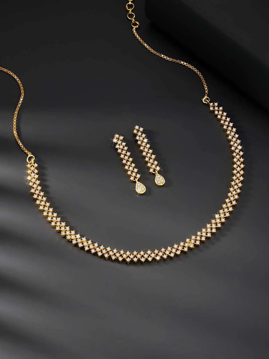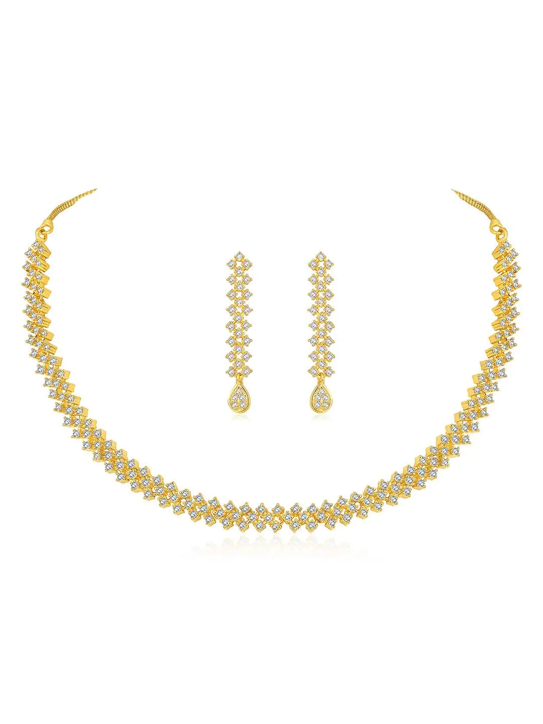 Product Name: CZ Studded Lattice Gold Necklace Set