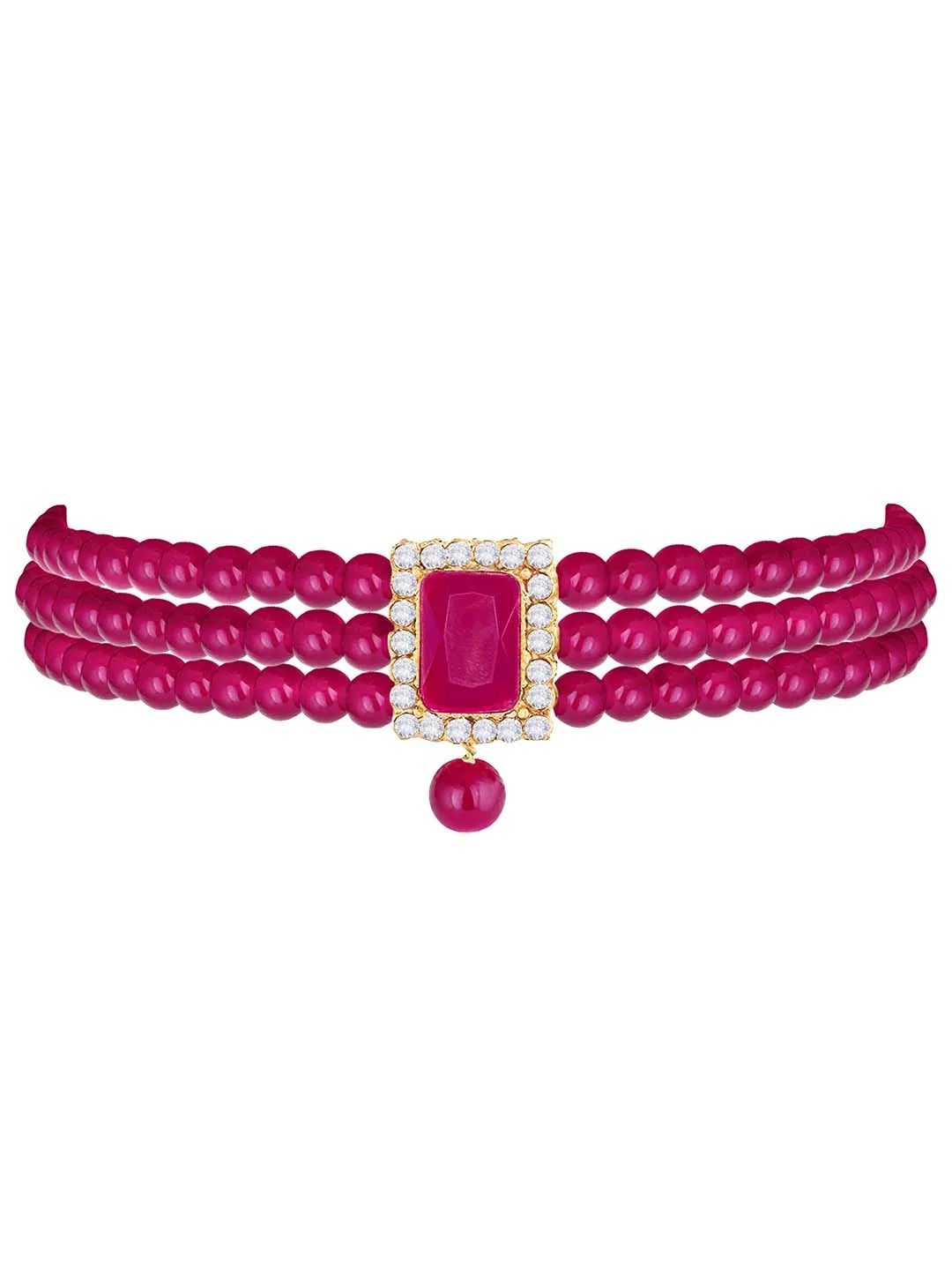 Product Name: Chic & Timeless Pearl Choker Set - Rani Pink