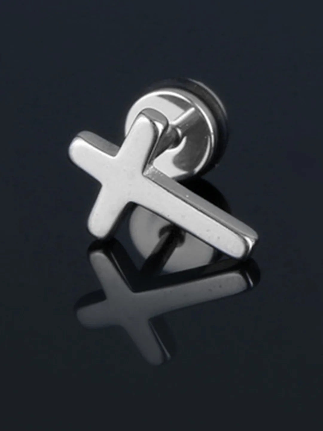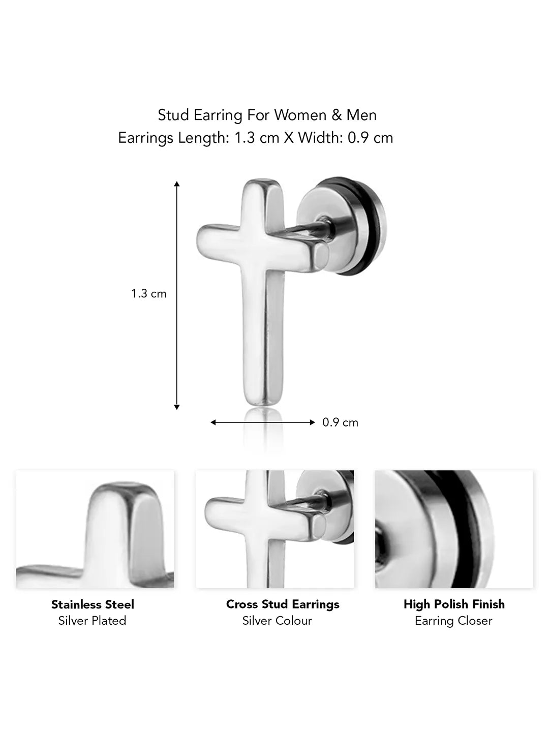 Product Name: Christian Cross Design Stud Earrings - Silver