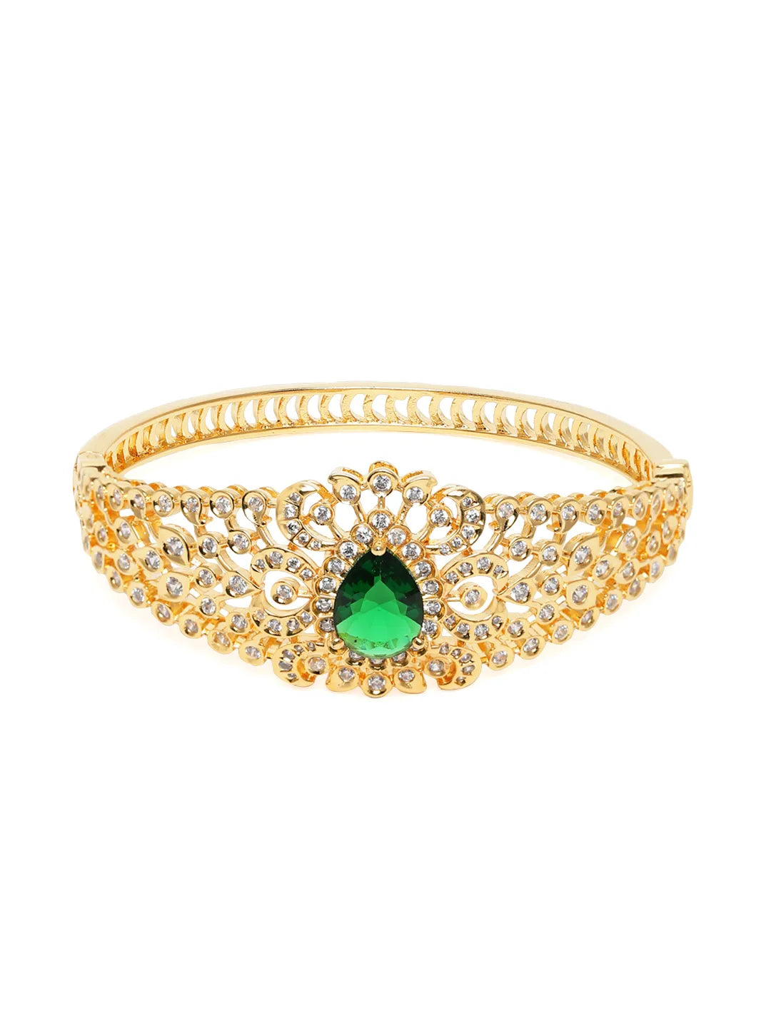 Product Name: Classic Kada with Stunning Pear Accent - Gold - Green