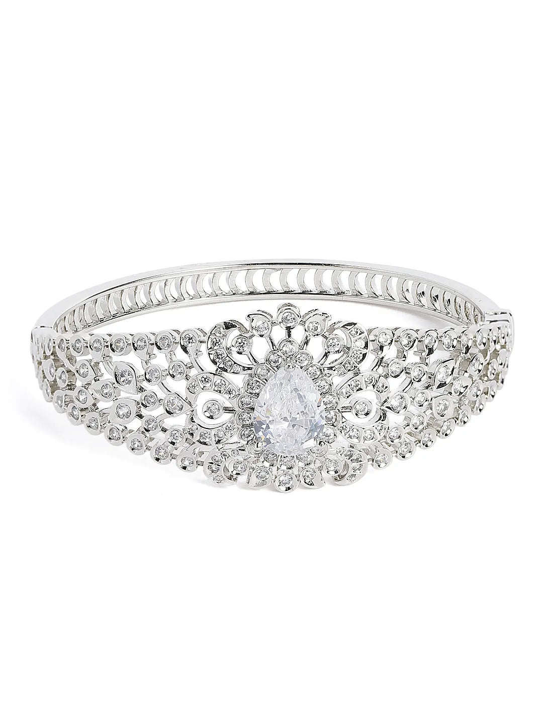 Product Name: Classic Kada with Stunning Pear Accent - White