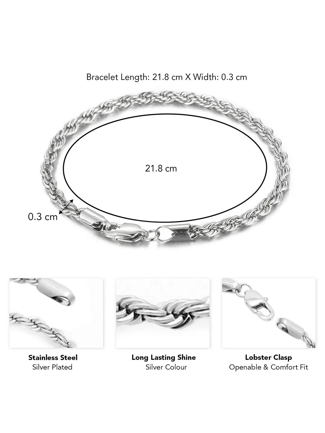 Dimensions: Bracelet Length: 21.8 cm Bracelet Width: 0.3 cm
