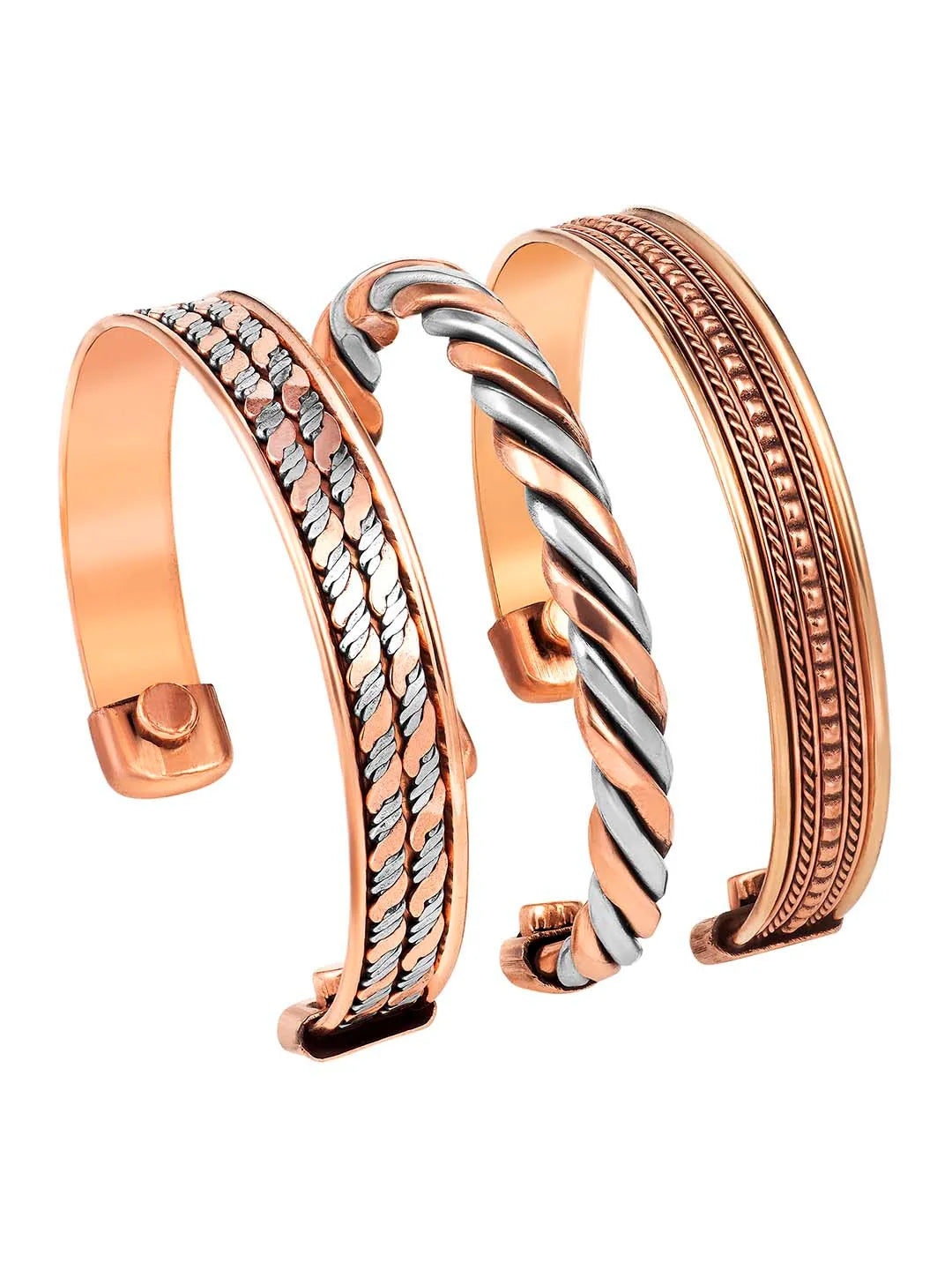 Dimensions: Bracelet 1 Length: 6.5 cm X Width: 0.9 cm; Bracelet 2 Length: 7 cm X Width: 1.2 cm; Bracelet 3 Length: 7 cm X Width: 1.2 cm; Weight: 64 Grams