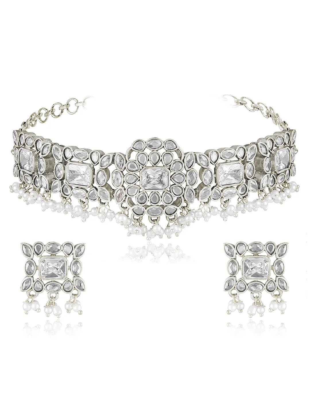 Product Name: Crystal Drop Choker with Pearl Dangles