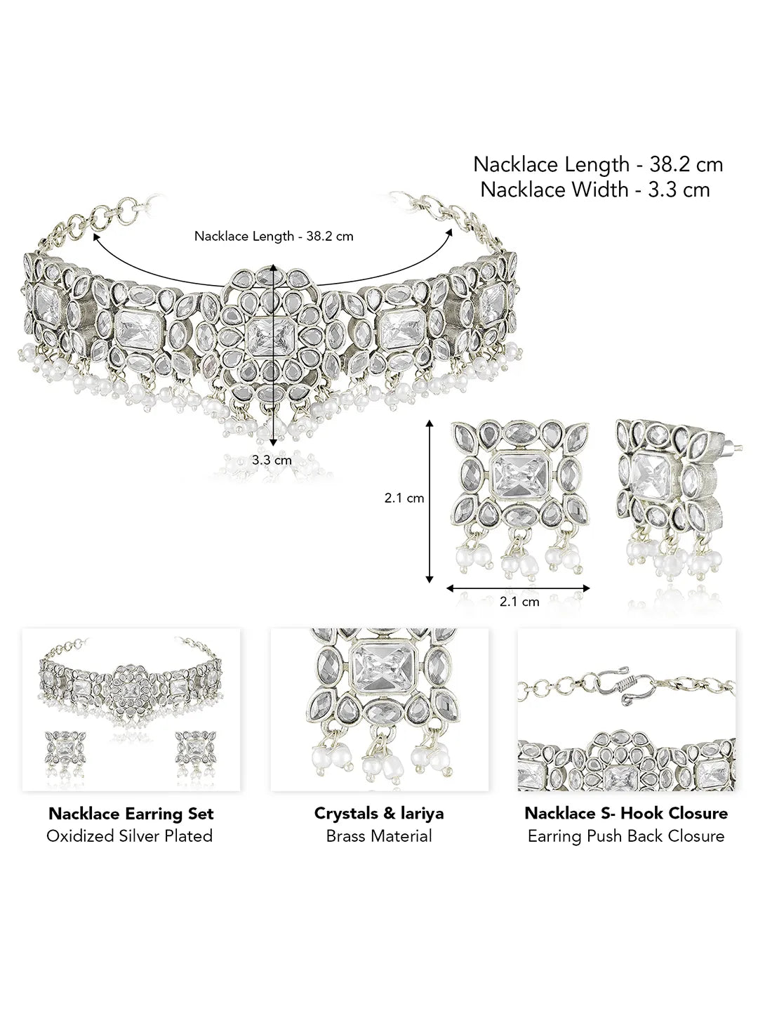 Dimensions: Necklace Length: 38.2 cm Necklace Width: 3.3 cm Earrings Length: 2.1 cm Earrings Width: 2.1 cm