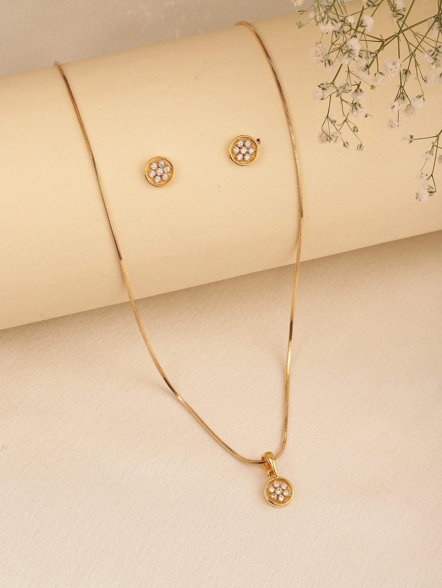 Product Name: Crystal Studded Spark Round Pendant Set