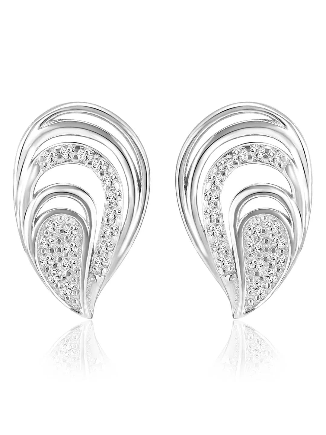 Product Name: Modern Leaf Design CZ Silver Stud Earrings
