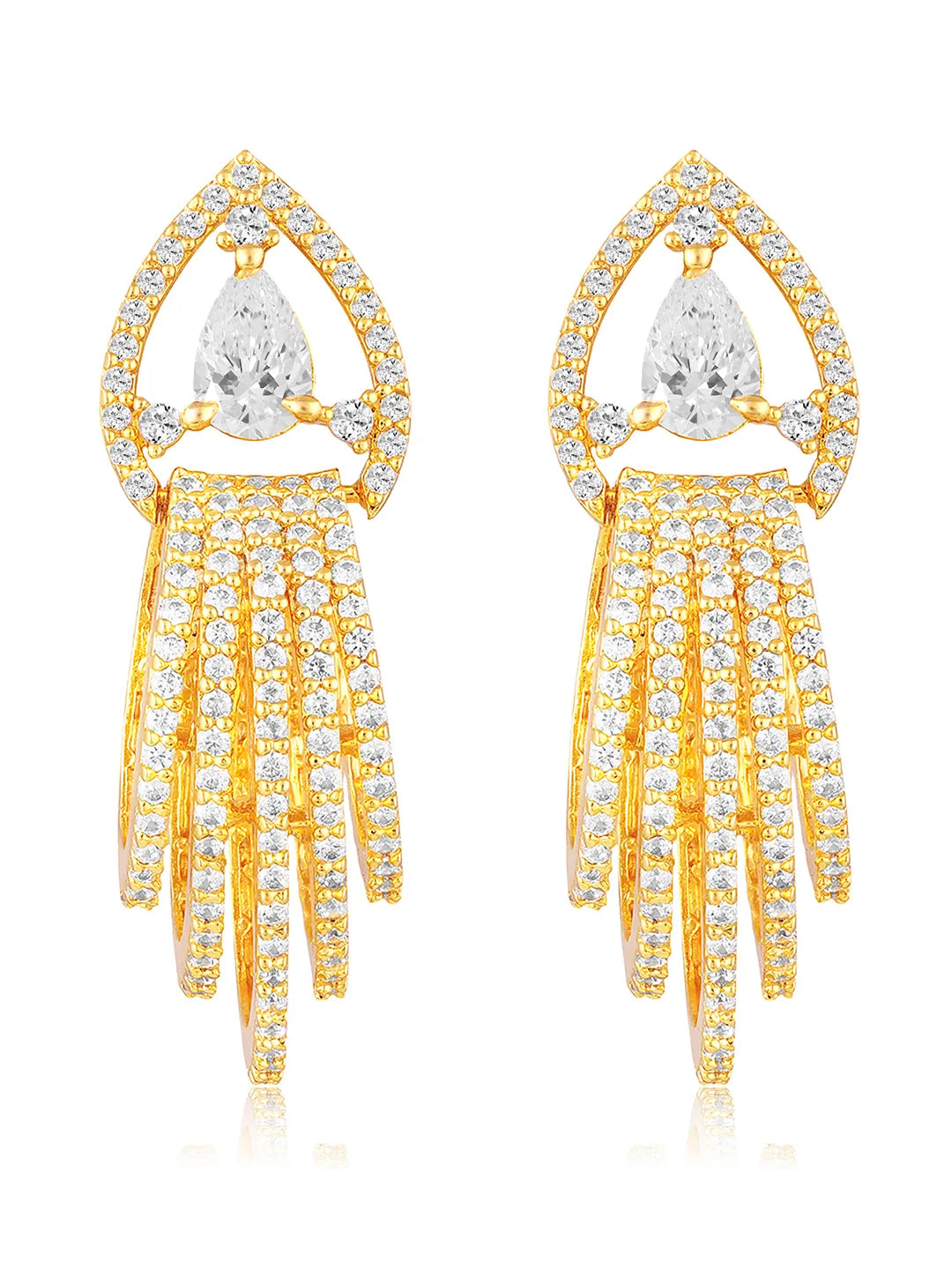 Product Name: Cubic Zirconia Dazzling Drop Earrings - Gold White