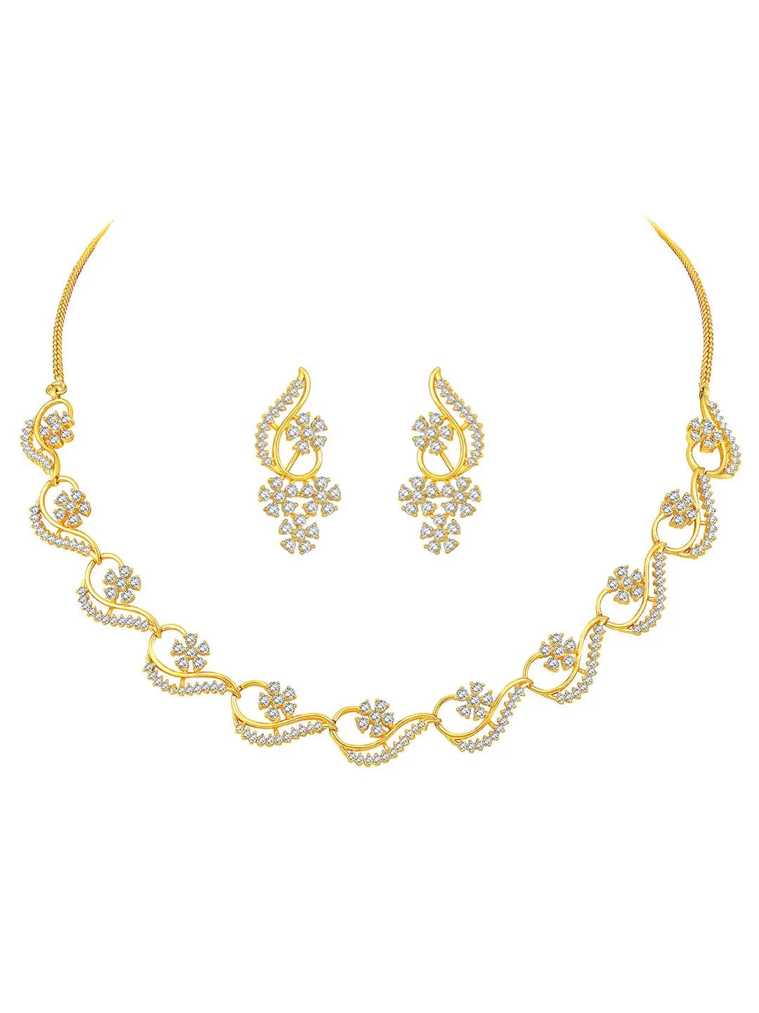 Product Name: CZ Blossom Ballet Floral Necklace Set - Gold