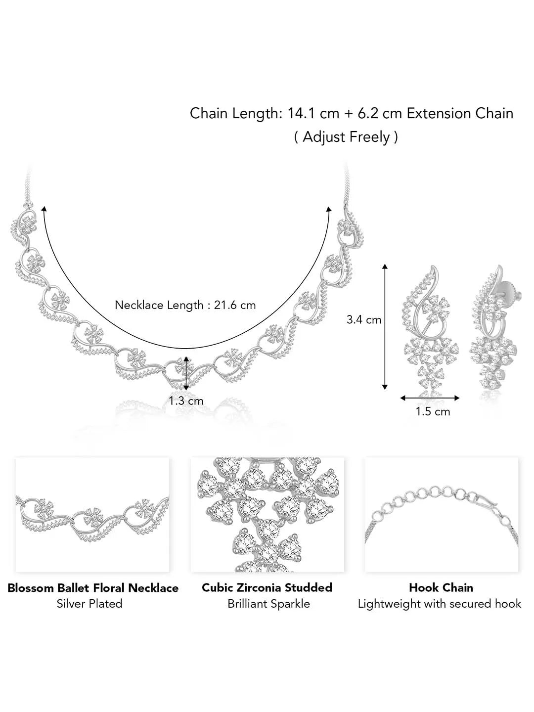 Product Name: CZ Blossom Ballet Floral Necklace Set - Silver