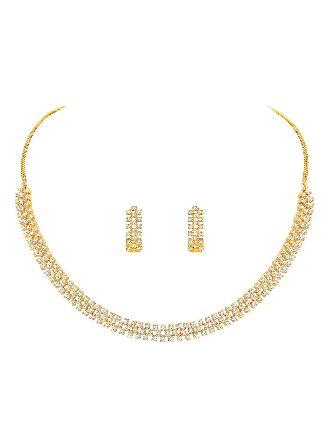 Product Name: CZ Studded Symphony Necklace Set - Gold