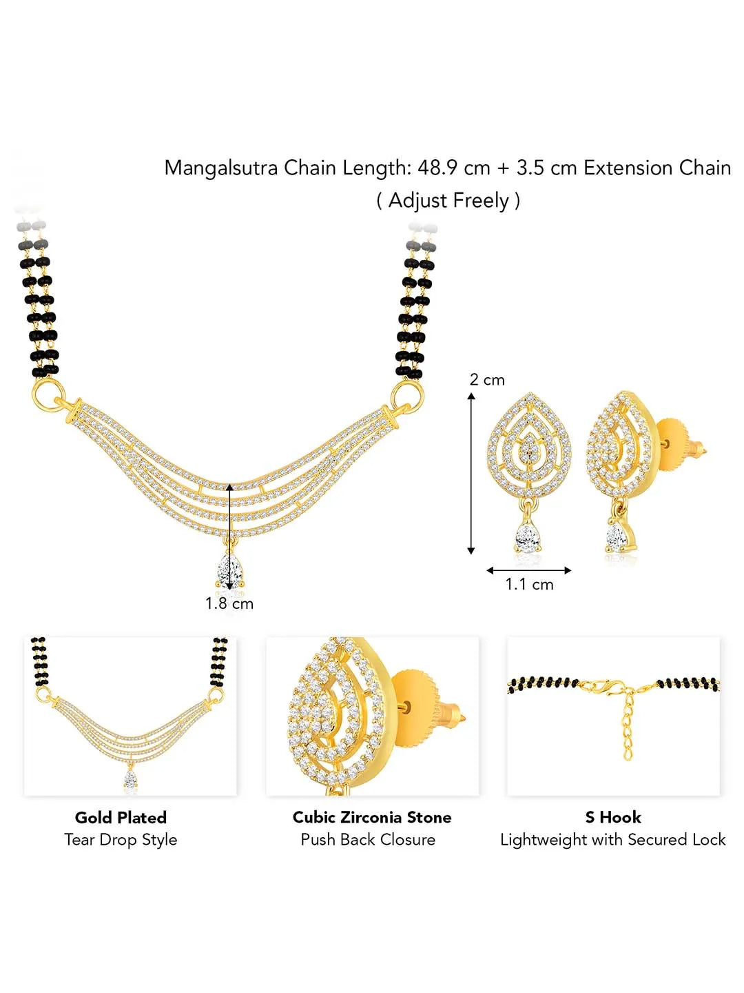 Dimensions: Mangalsutra Length: 48.9 cm + 3.5 cm Extender Width: 1.8 cm; Earrings Length: 2 cm Width: 1.1 cm