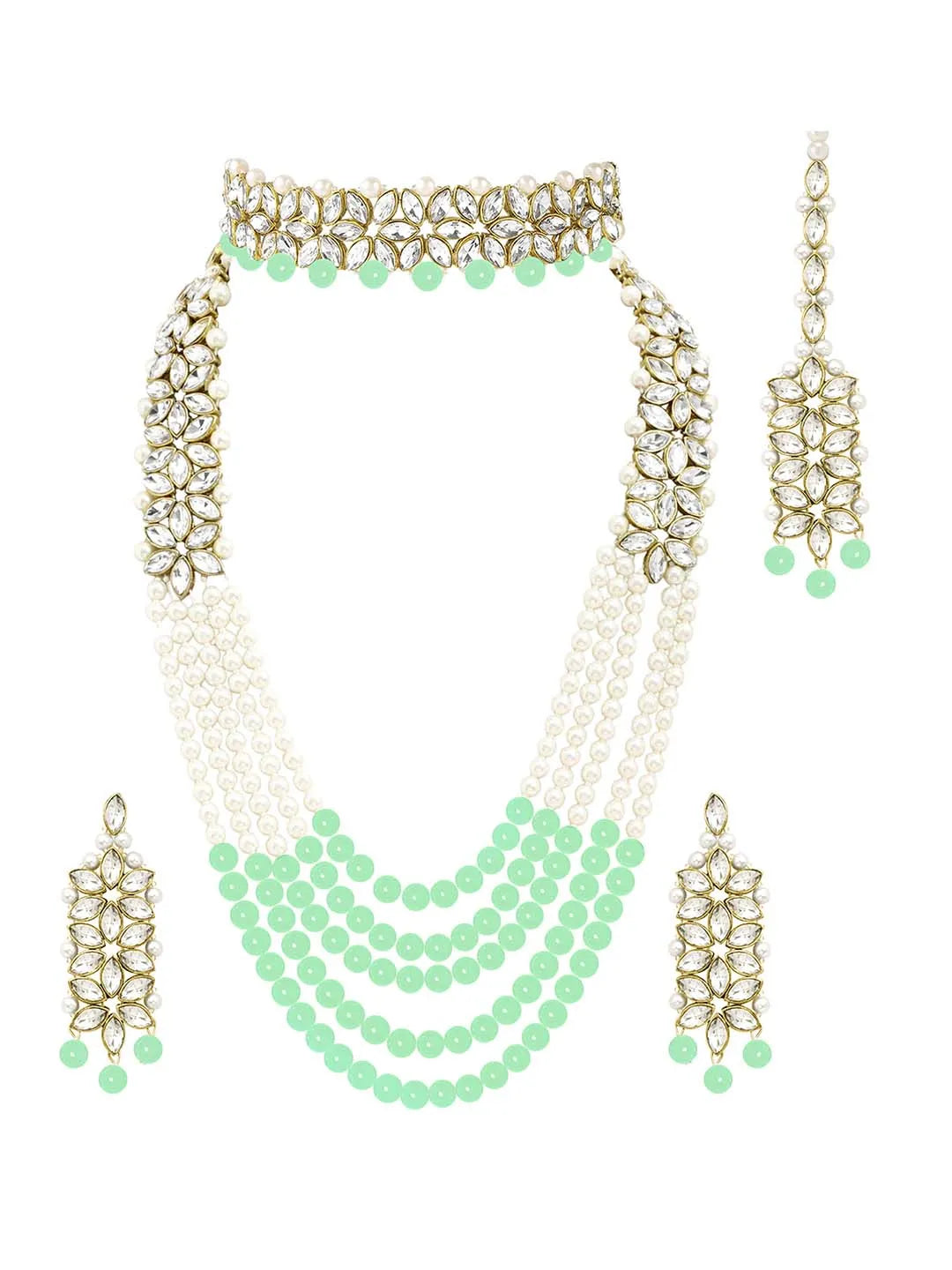 In the Box: 1 Choker 1 Long Necklace 1 Pair of Earrings 1 Maangtikka