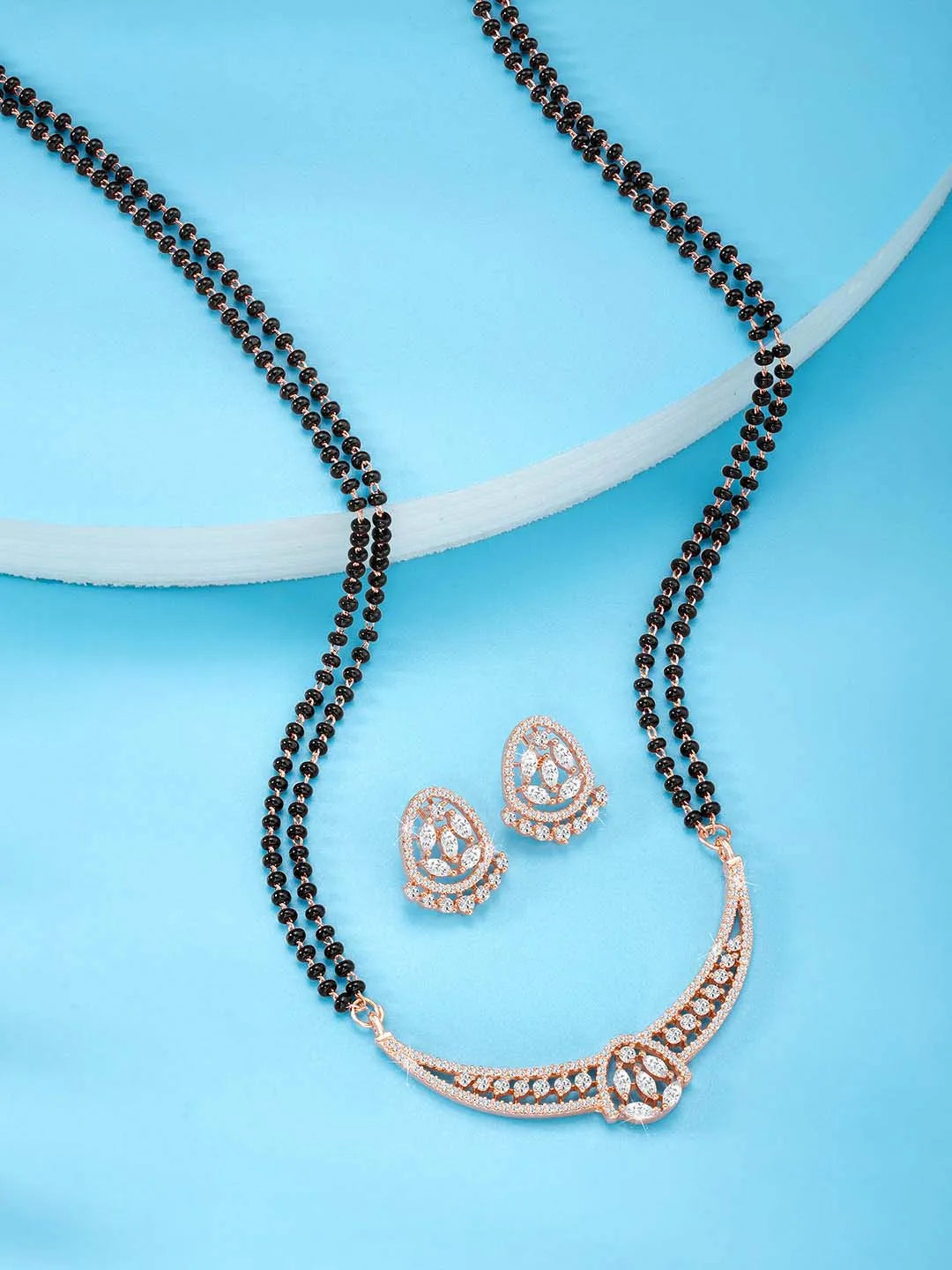 Product Name: CZ Sleek Floral Rose Gold Mangalsutra Set