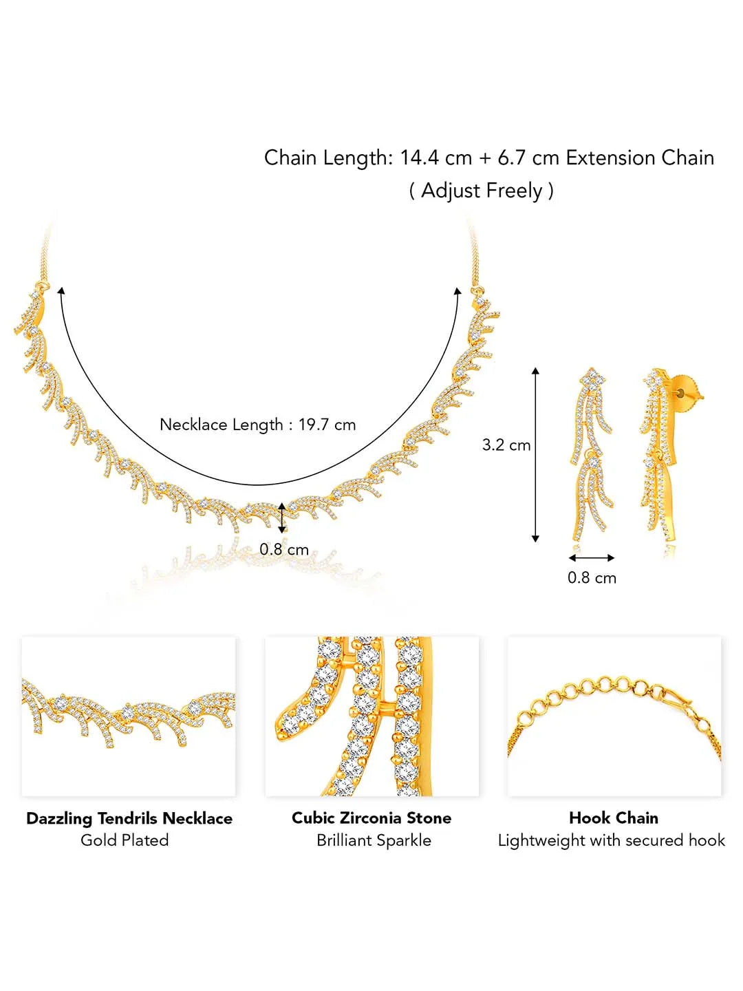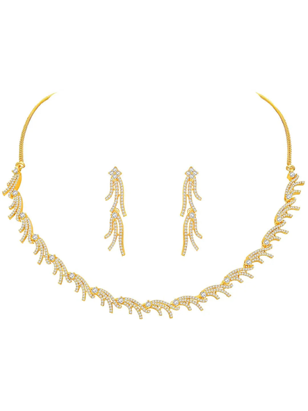 Product Name: Dazzling Tendrils CZ Necklace Set - Gold