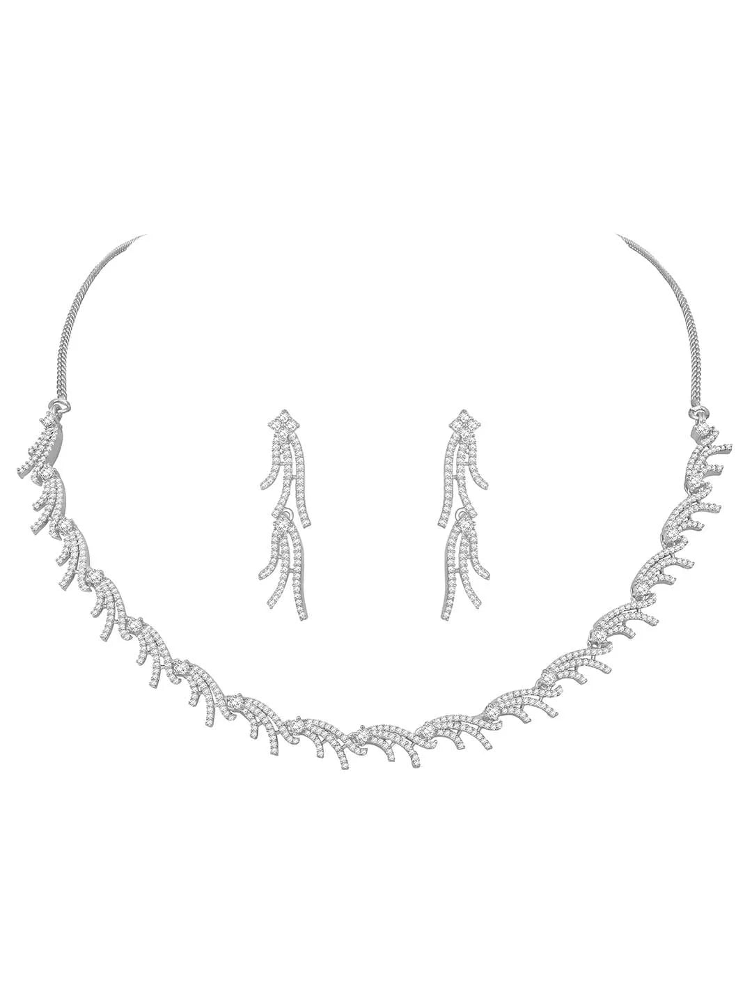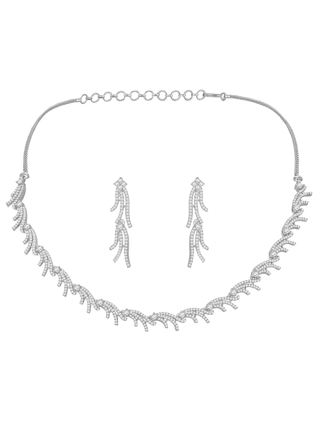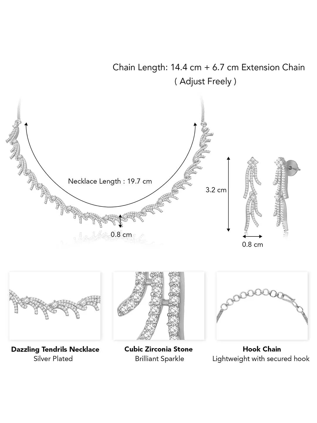 Product Name: Dazzling Tendrils CZ Necklace Set - Silver