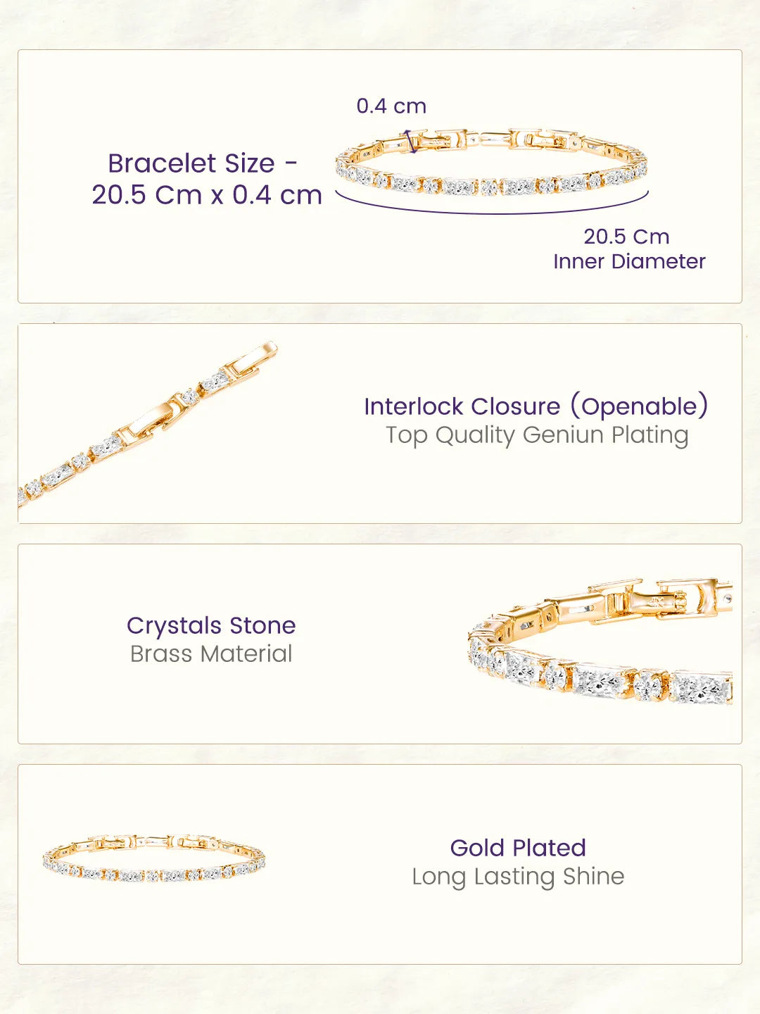 Product Name: Delicate CZ Stones Studded Gold Bracelet