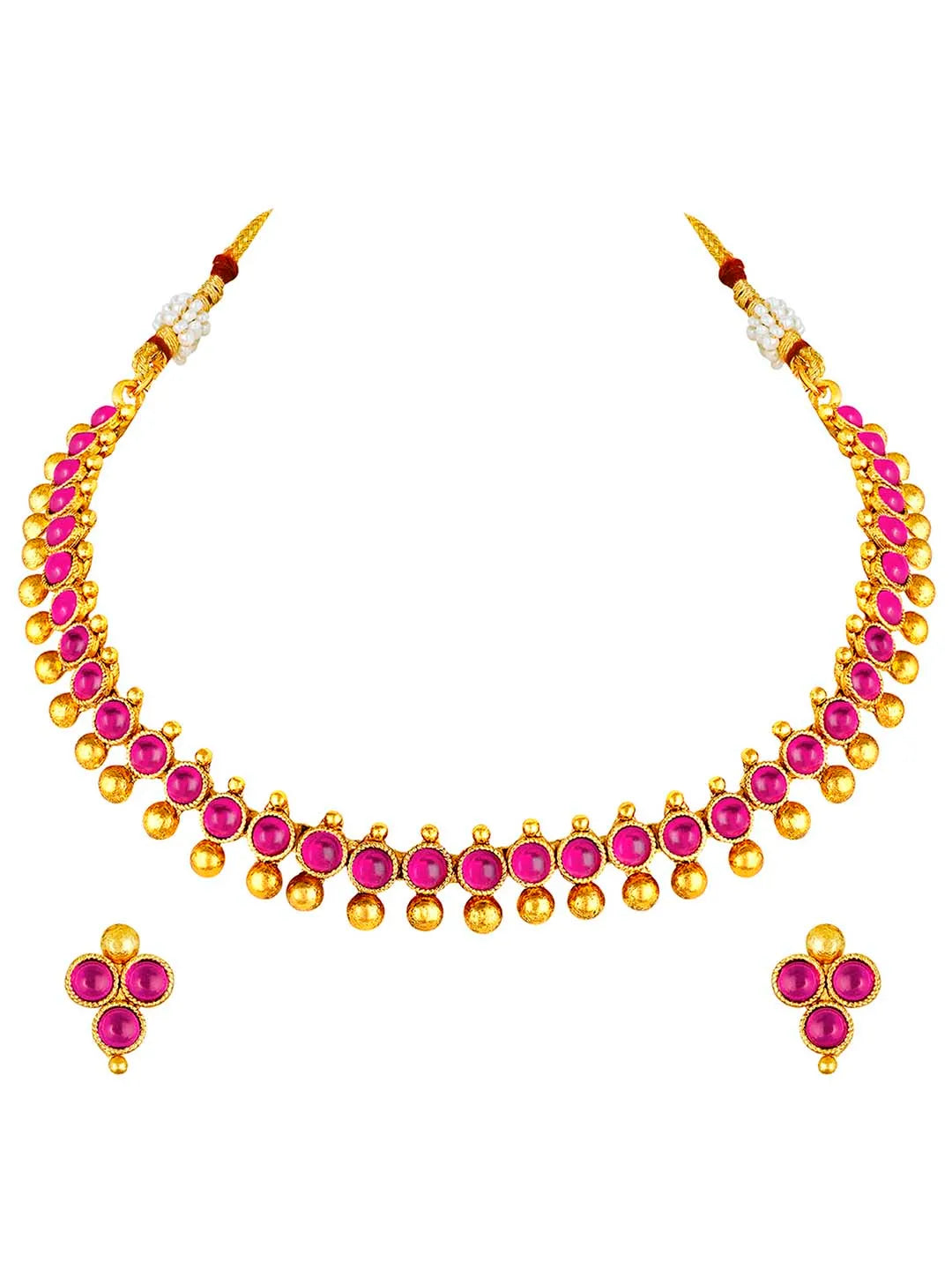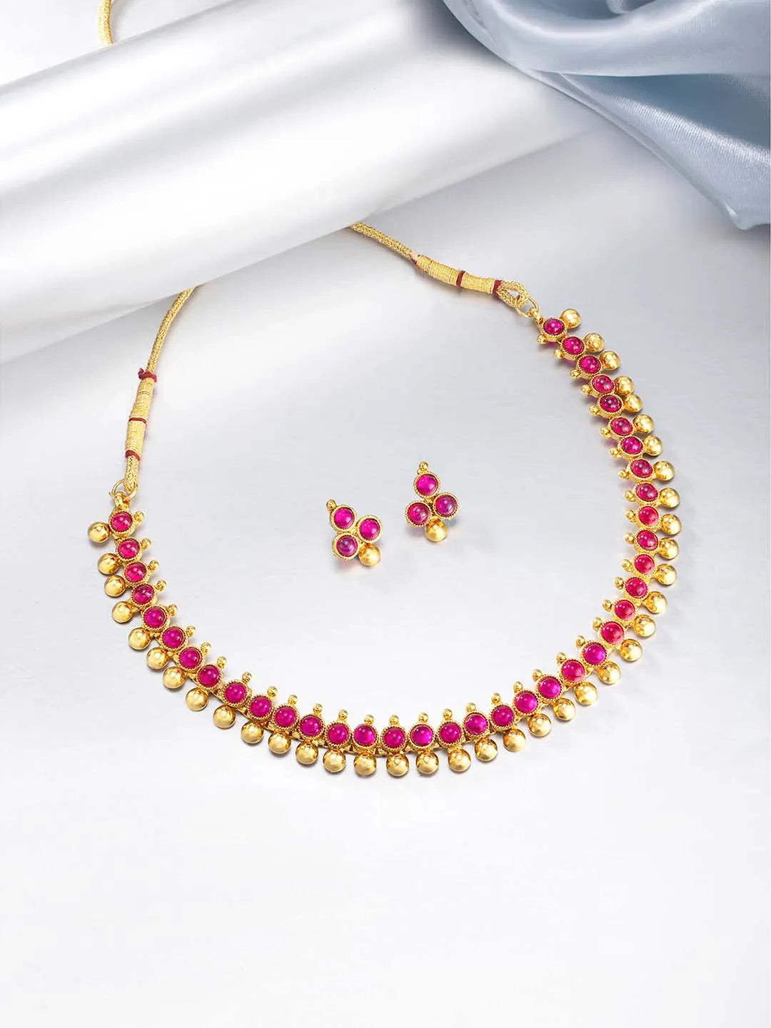Product Name: Delicate Elegance Necklace Set - Rani Pink