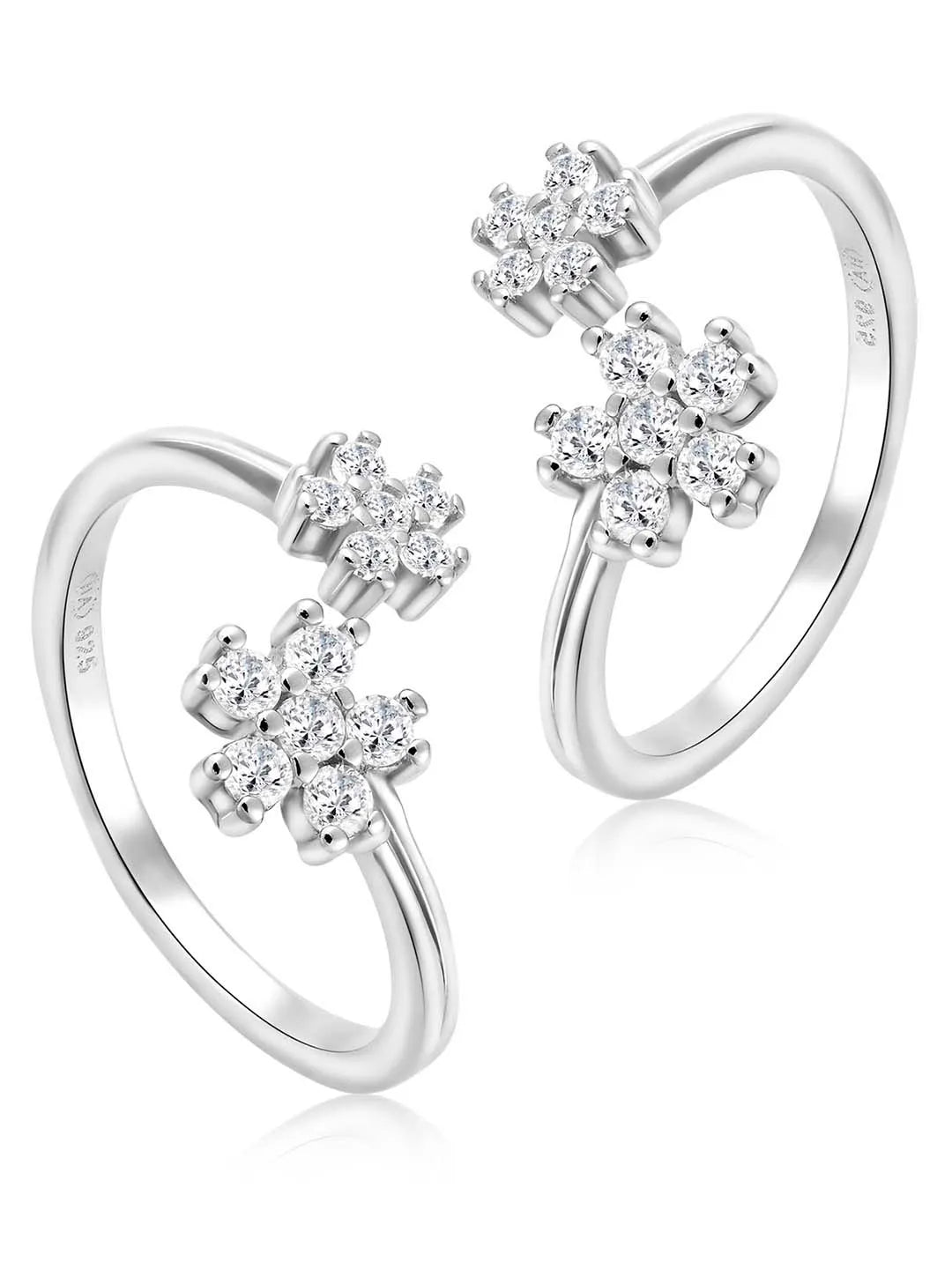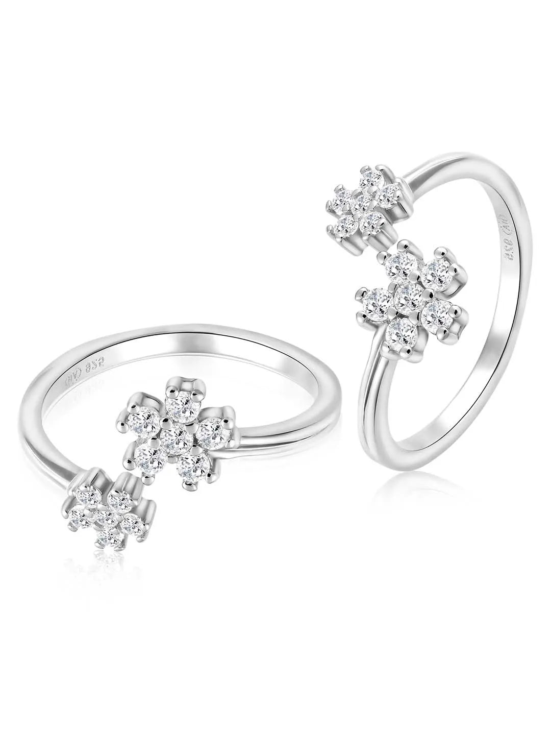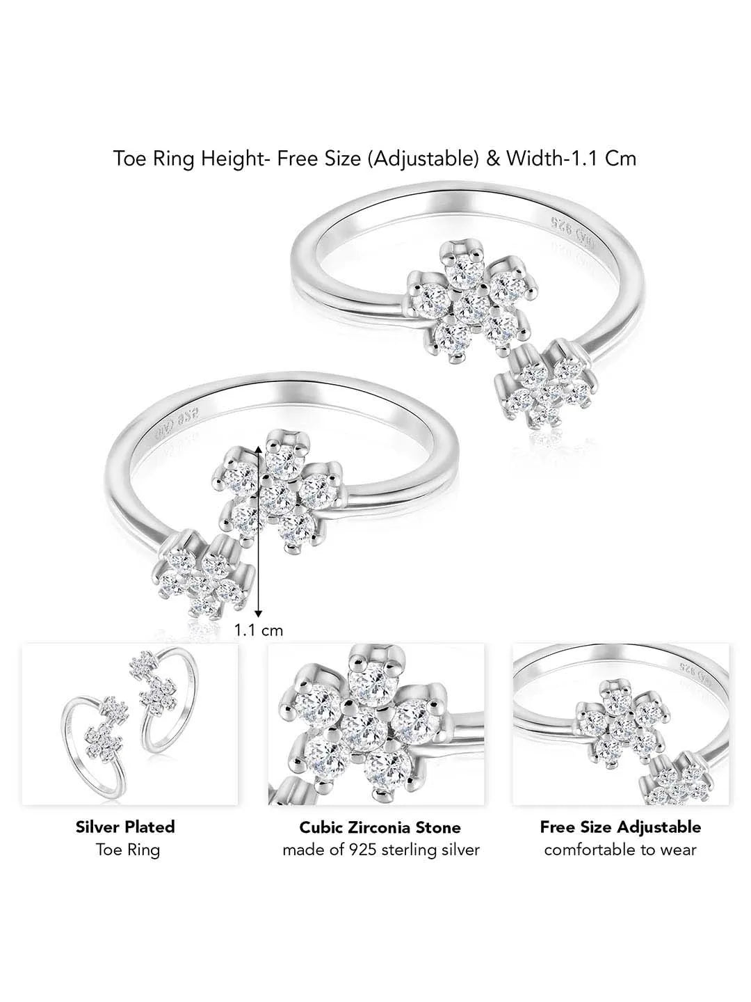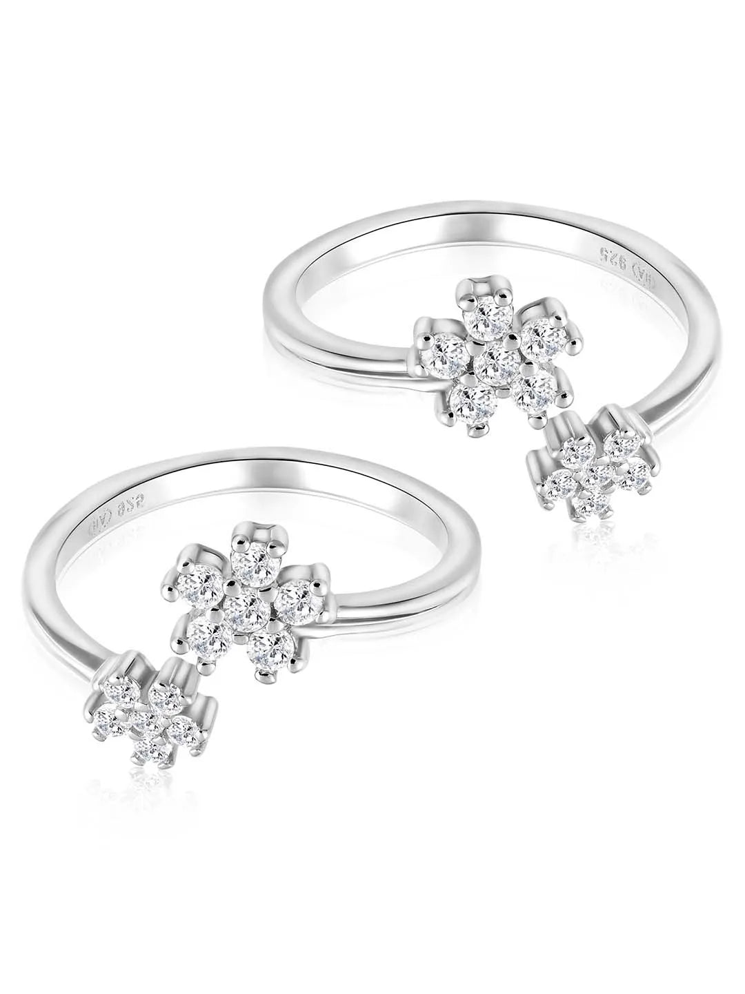 Product Name: Delicate Floral Charm CZ Toe Rings - Silver