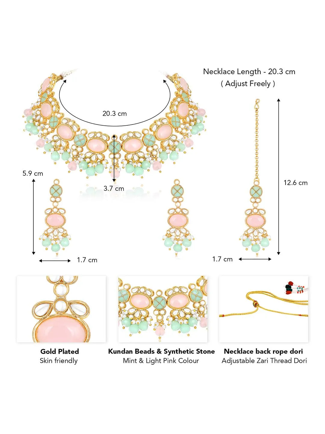Dimensions: Necklace length: 20.6 cm x Width: 4 cm ; Earrings length: 5.6 cm x Width: 1.7 cm ; Maangtikka Length: 11.1 cm x Width: 1.7 cm
