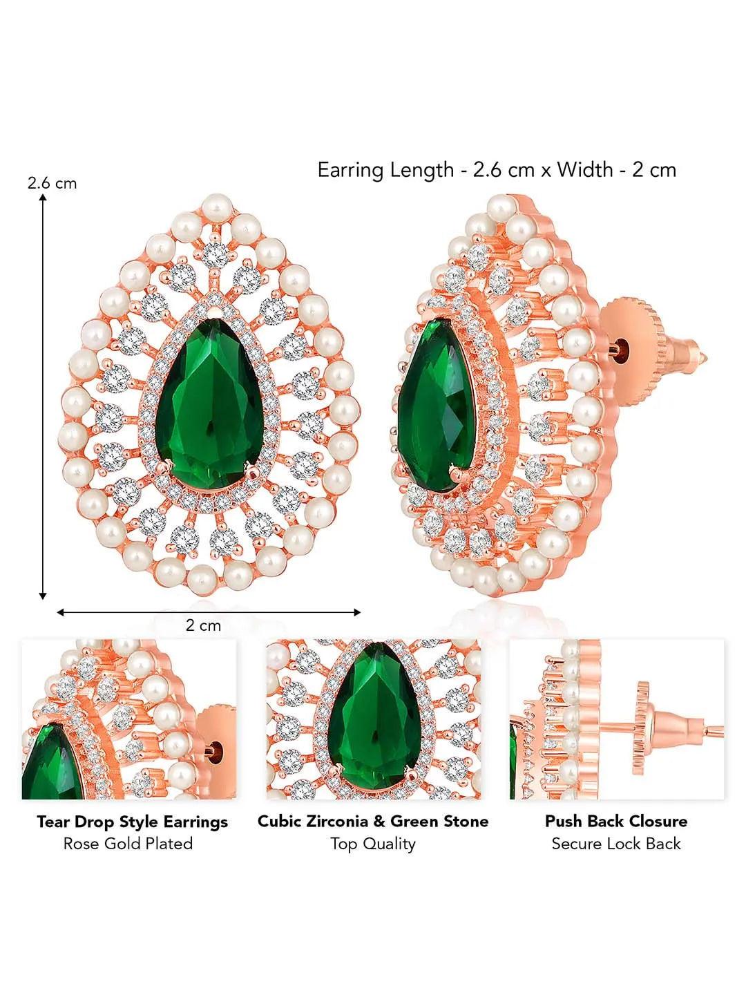 Product Name: Pearl Emerald Teardrop Rose Gold Stud Earring