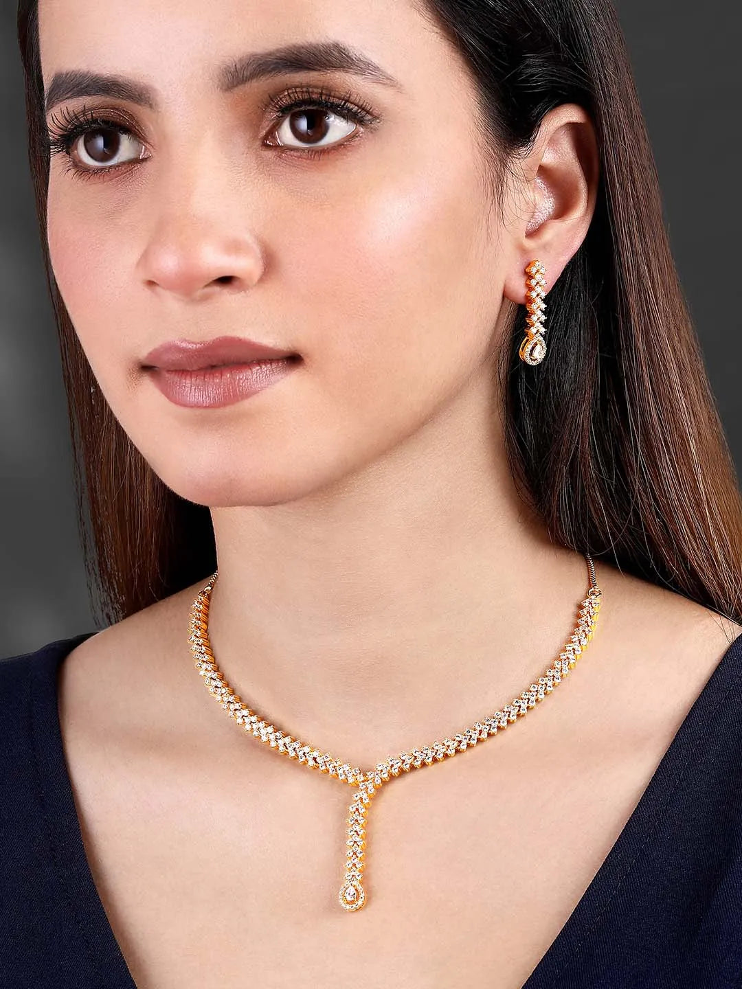 Product Name: Droplets of Desire CZ Necklace Set - Gold