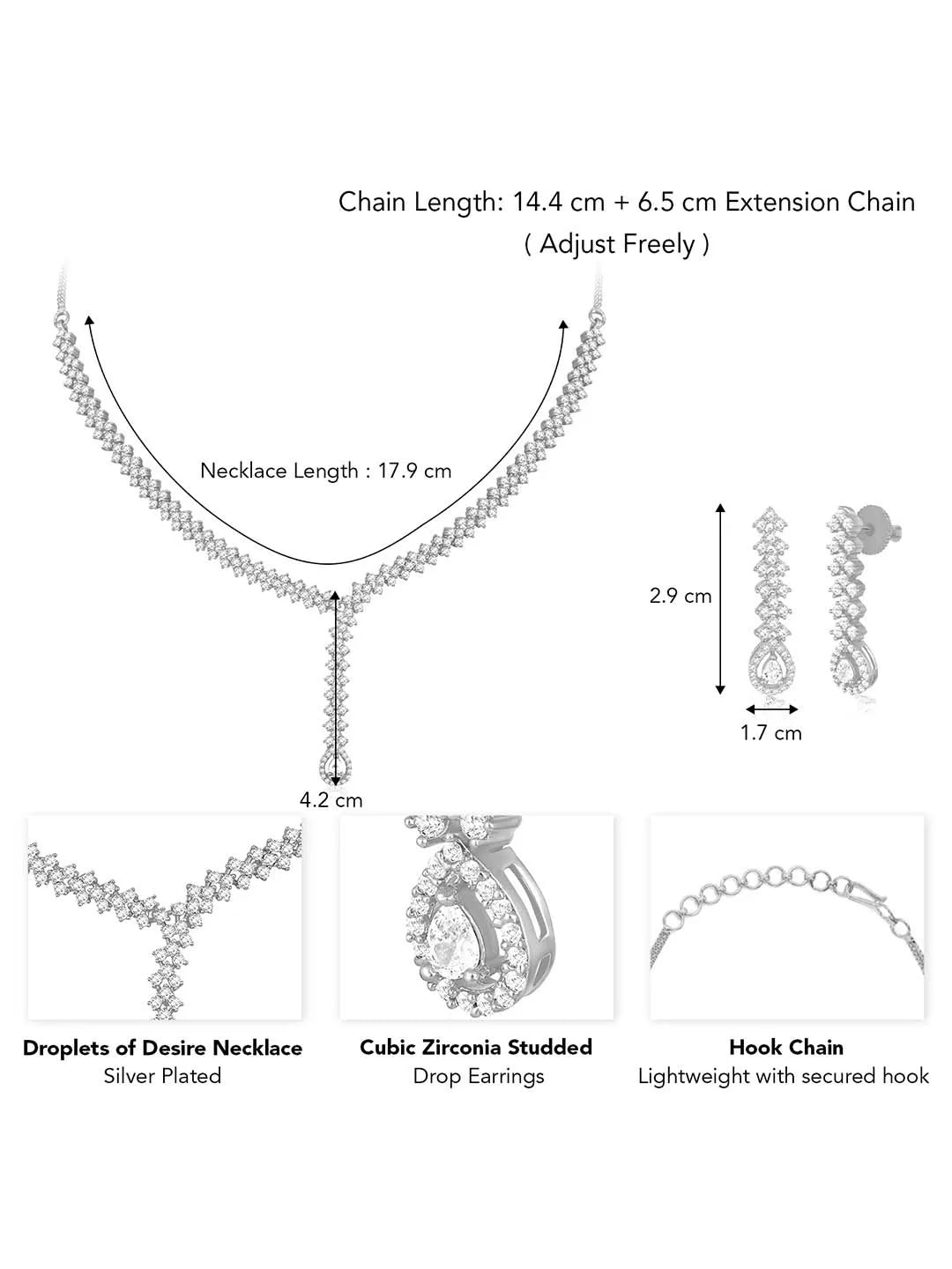 Product Name: Droplets of Desire CZ Necklace Set - Silver