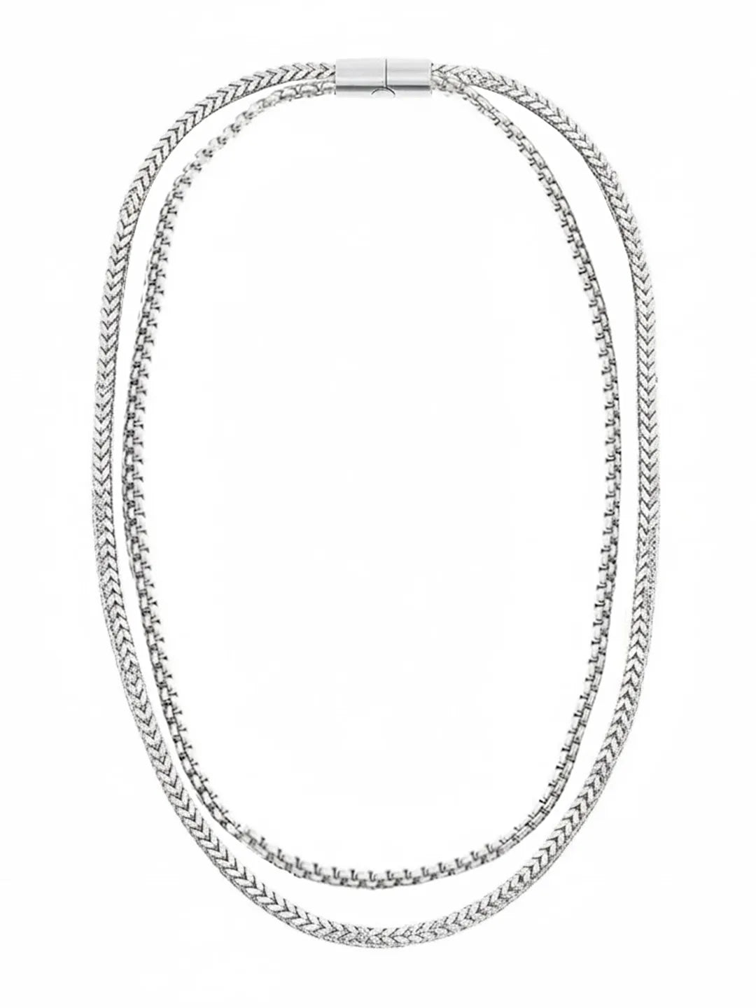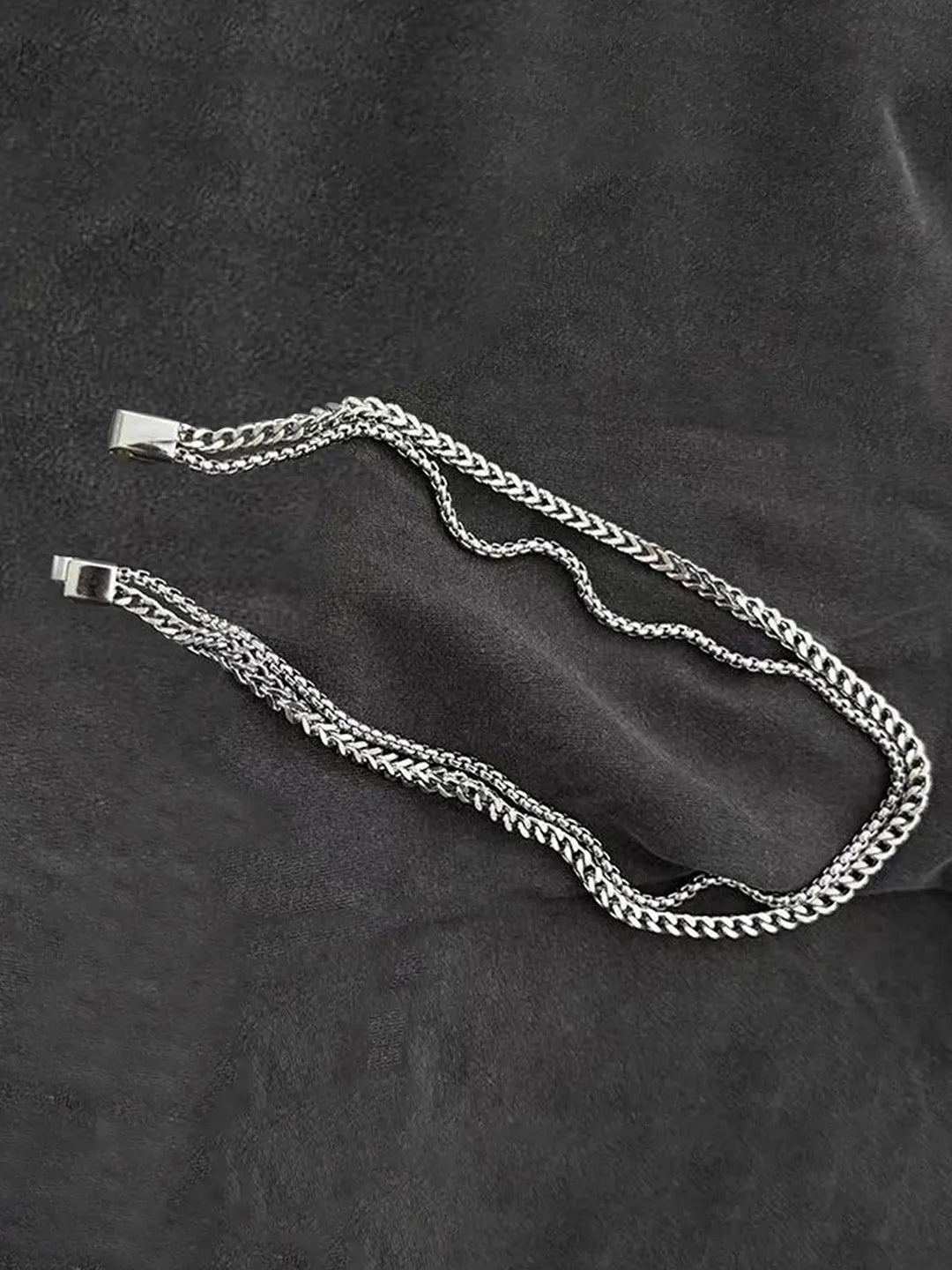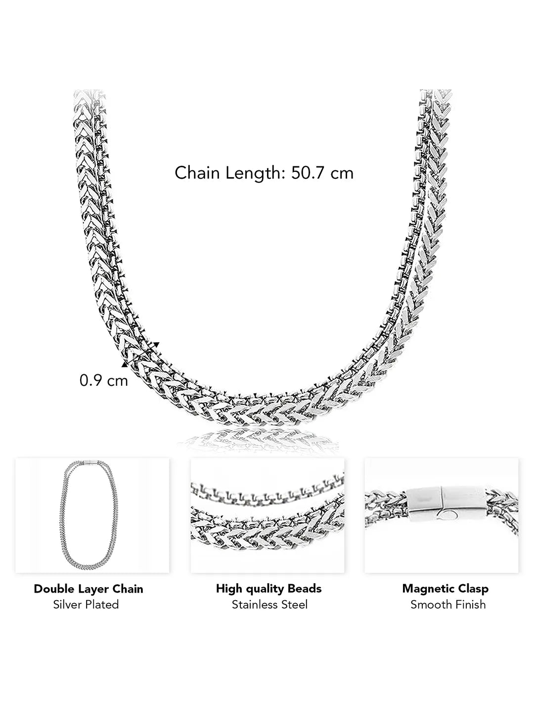 Product Name: Dual Layer Cuban Chain Silver Necklace For Men